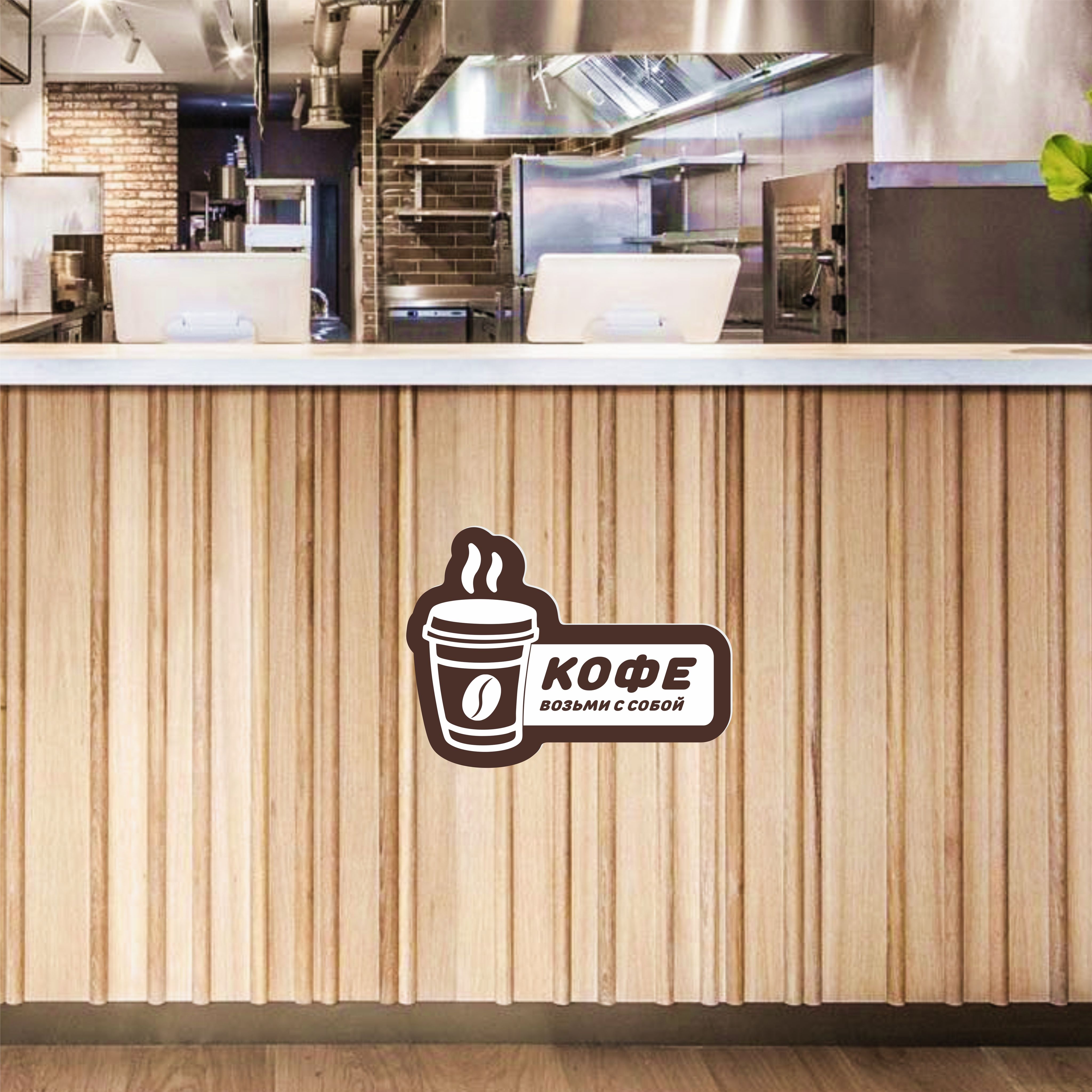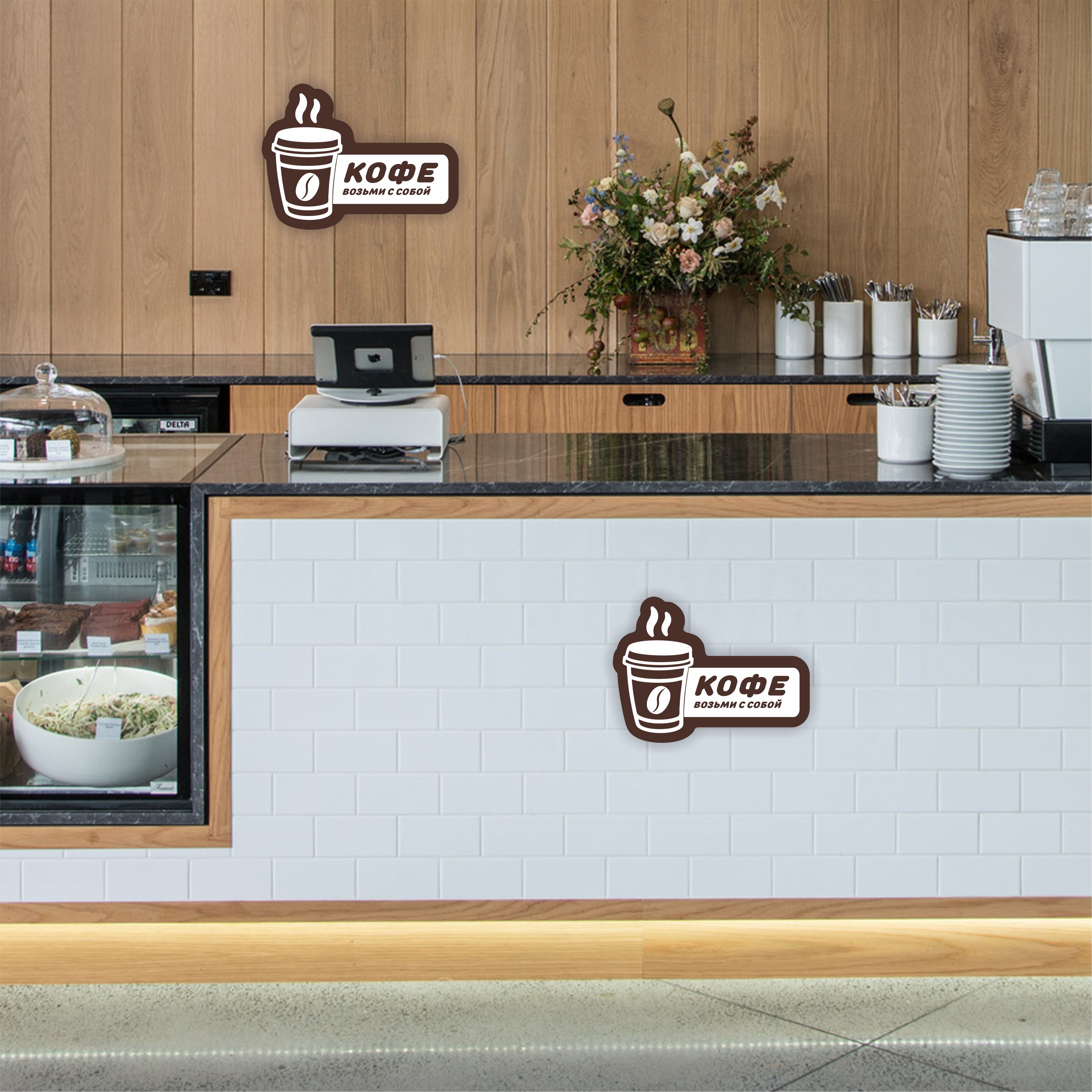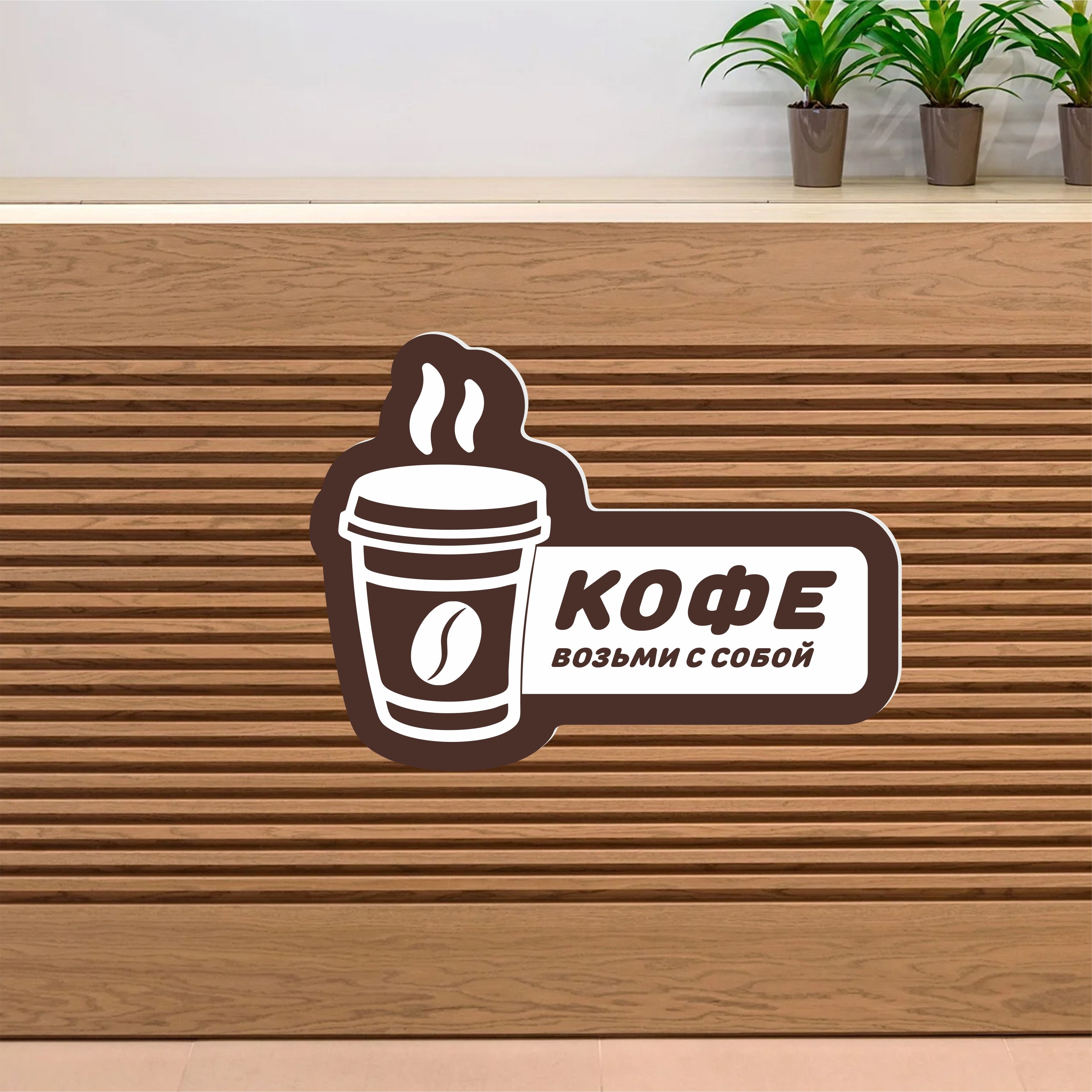 Вывеска фигурная "Кофе возьми с собой", из ПВХ пластика 3мм, для кофейни и вендингового автомата
