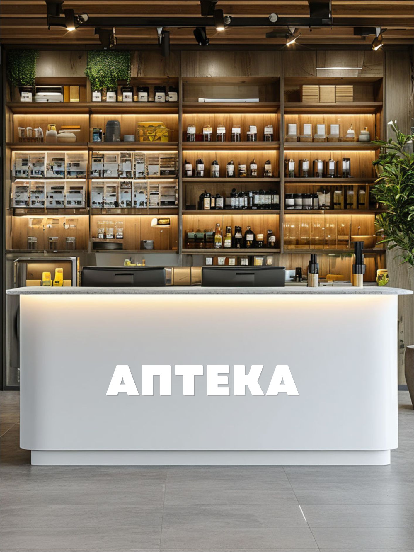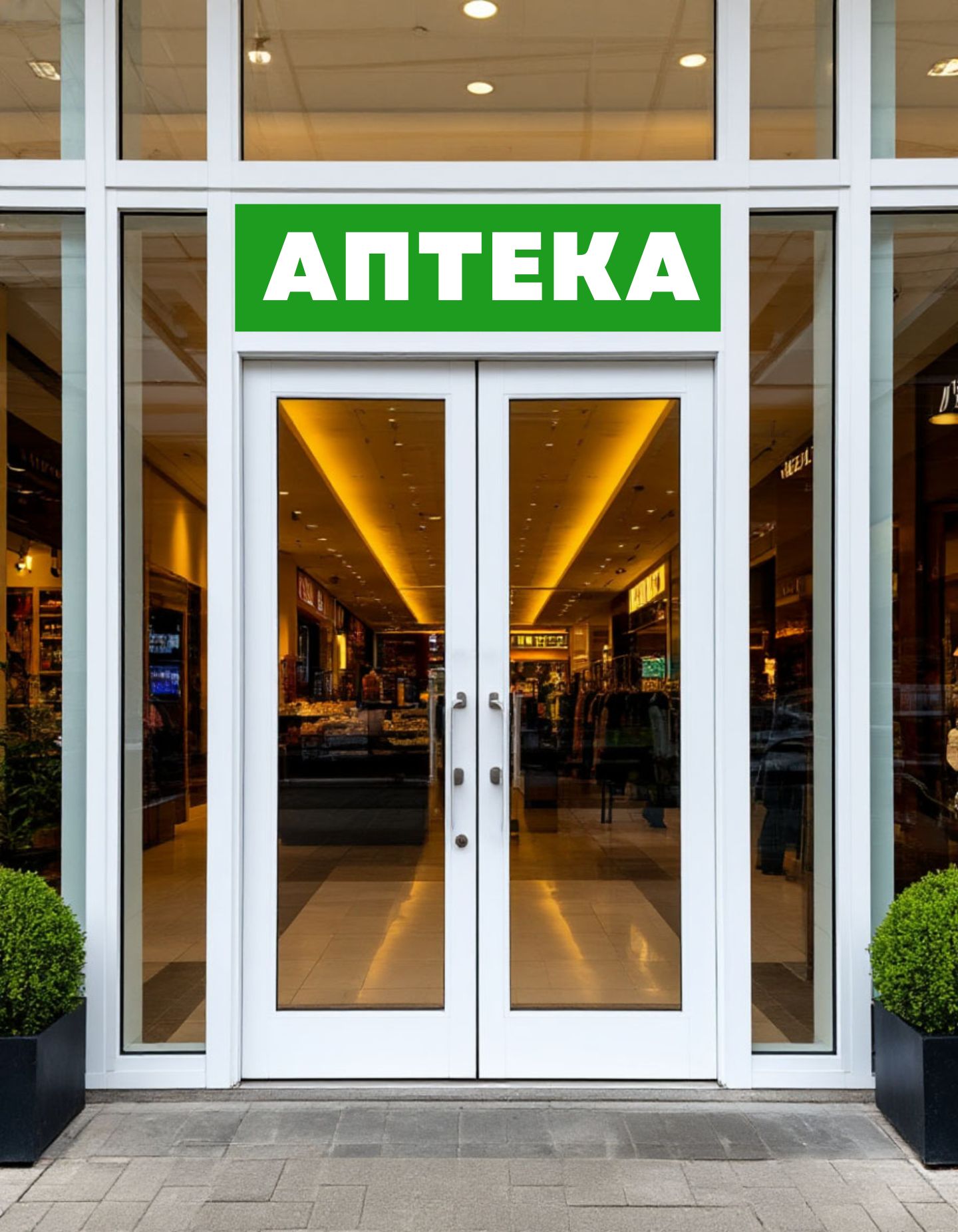 Вывеска-надпись из плоских букв ПВХ "Аптека", буквы из пластика для оформления аптеки