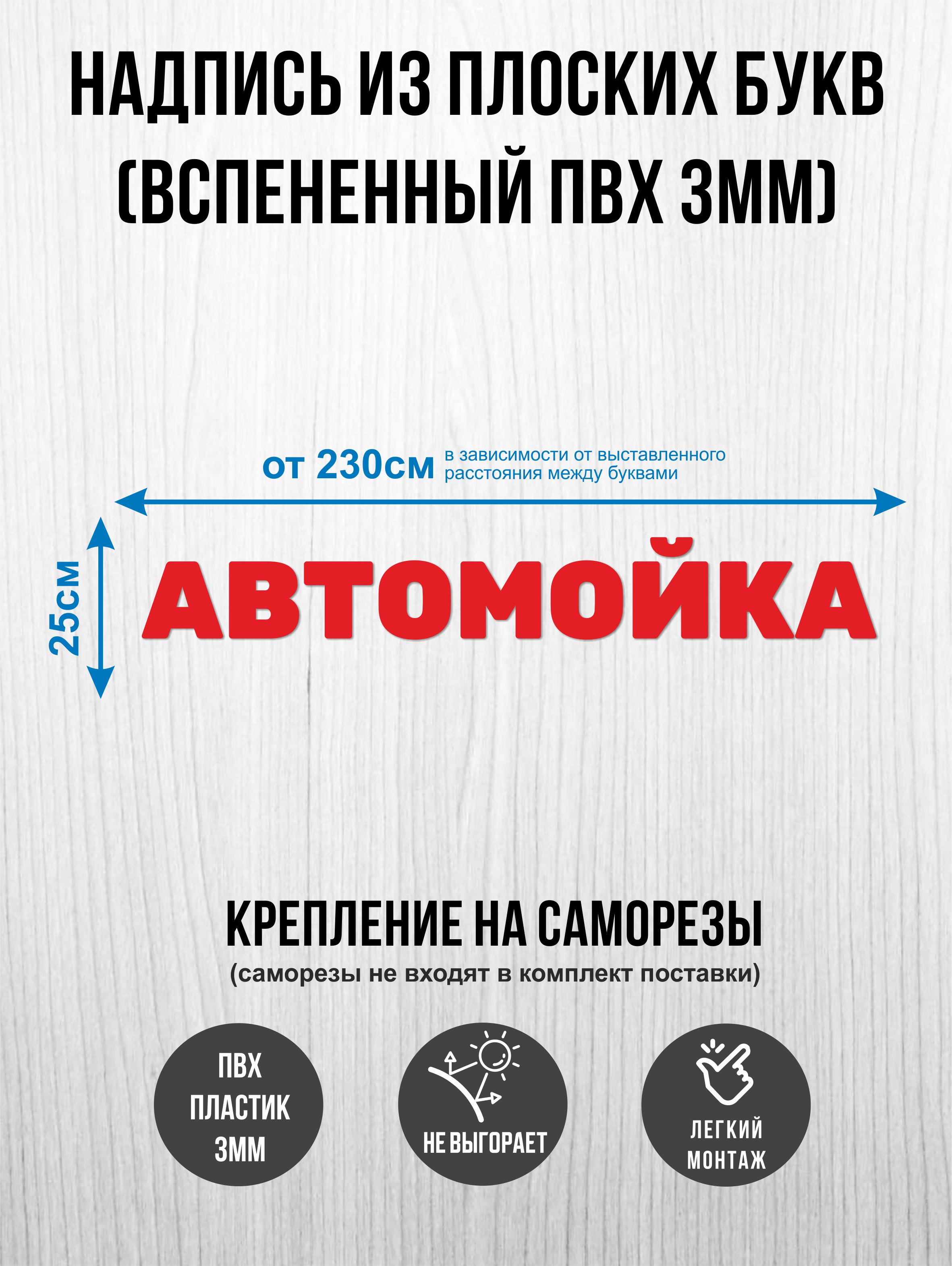Главная / Каталог продукции / Вывески и оформление торговых точек / Вывеска-надпись из плоских букв ПВХ "Автомойка", буквы из пластика для оформления рекламы