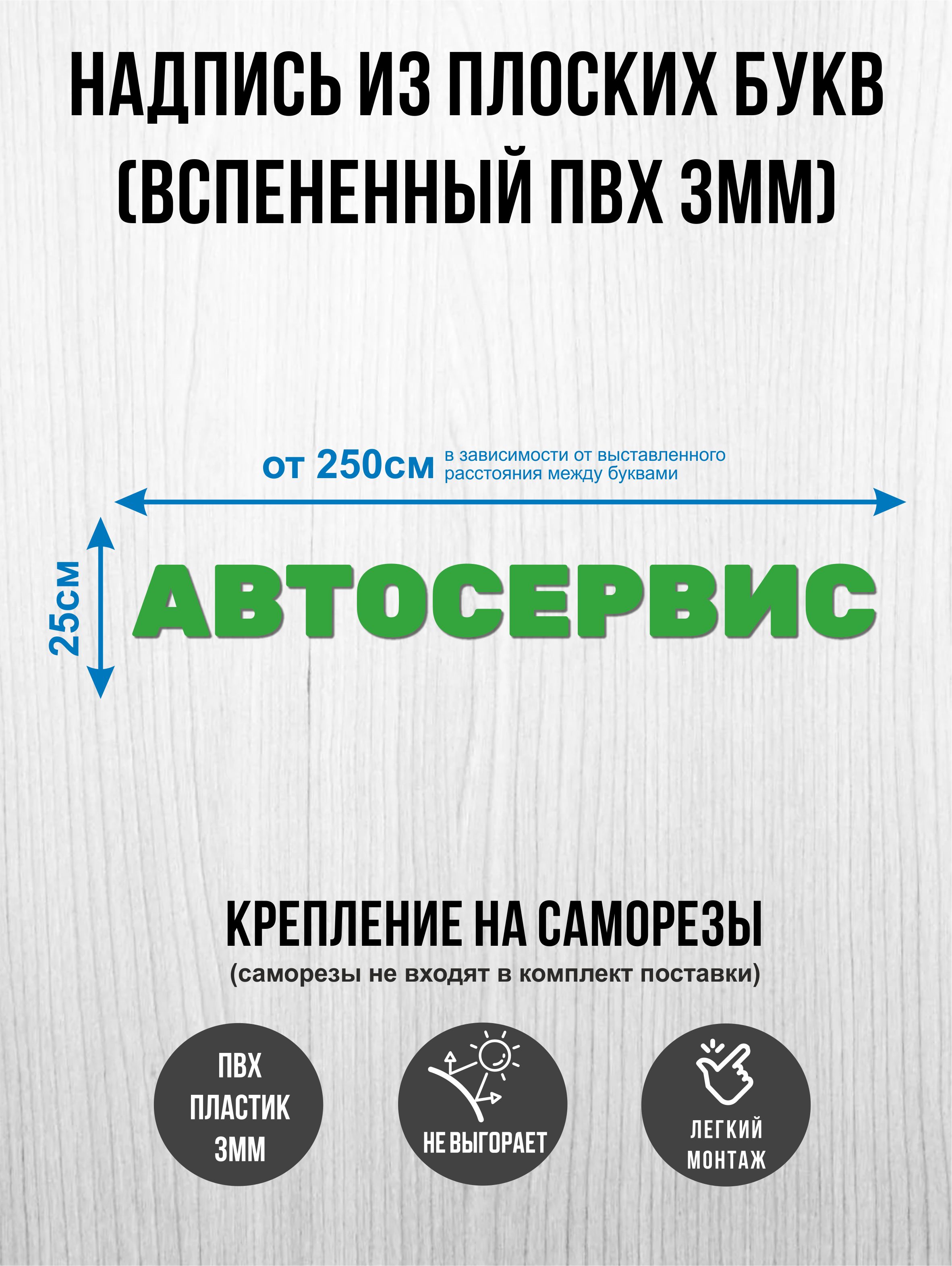 Вывеска-надпись из плоских букв ПВХ "Автосервис", буквы из пластика для оформления сервисного центра по ремонту автомобилей