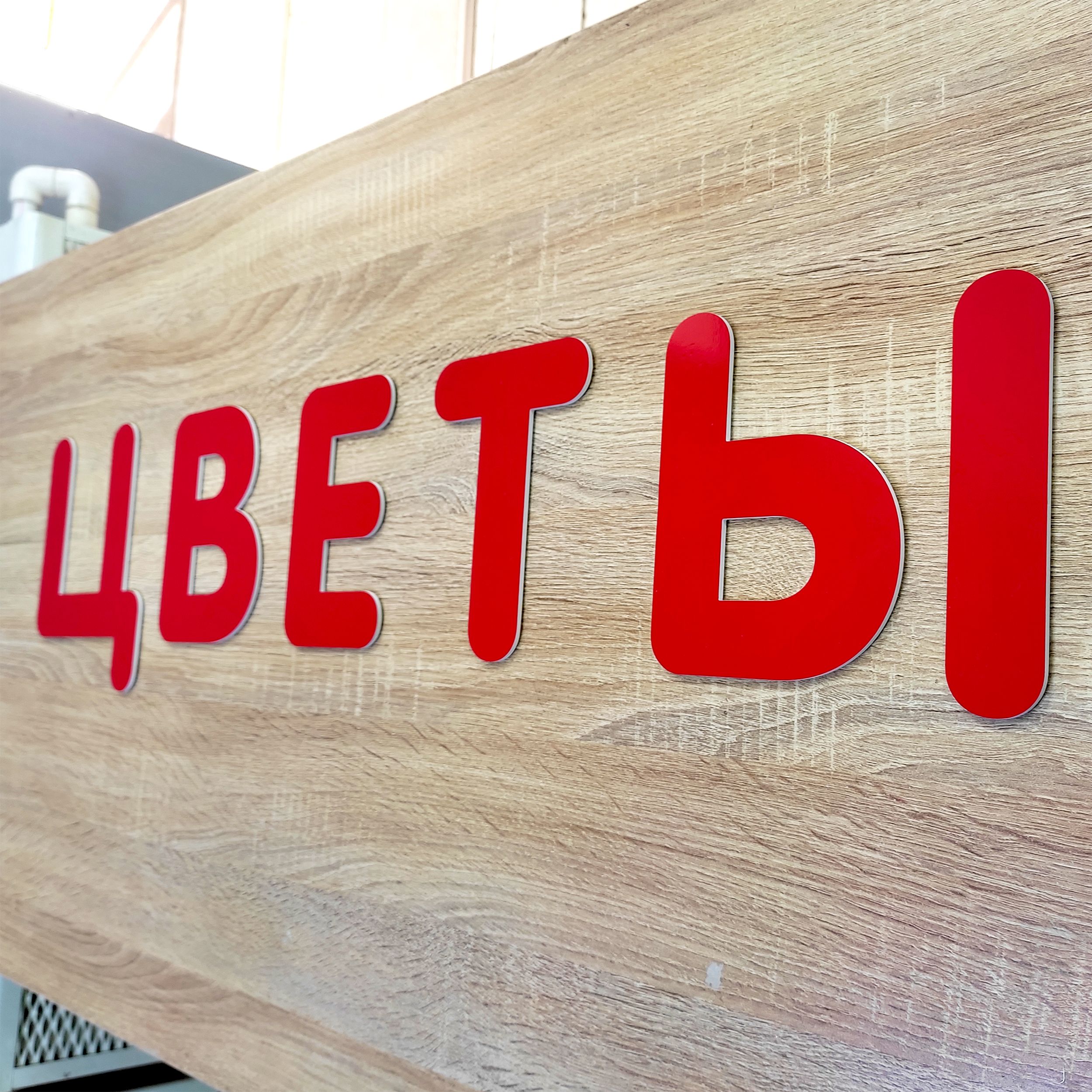 Главная / Каталог продукции / Вывески и оформление торговых точек / Вывеска-надпись из плоских букв ПВХ "Цветы", буквы из пластика для оформления точки продаж