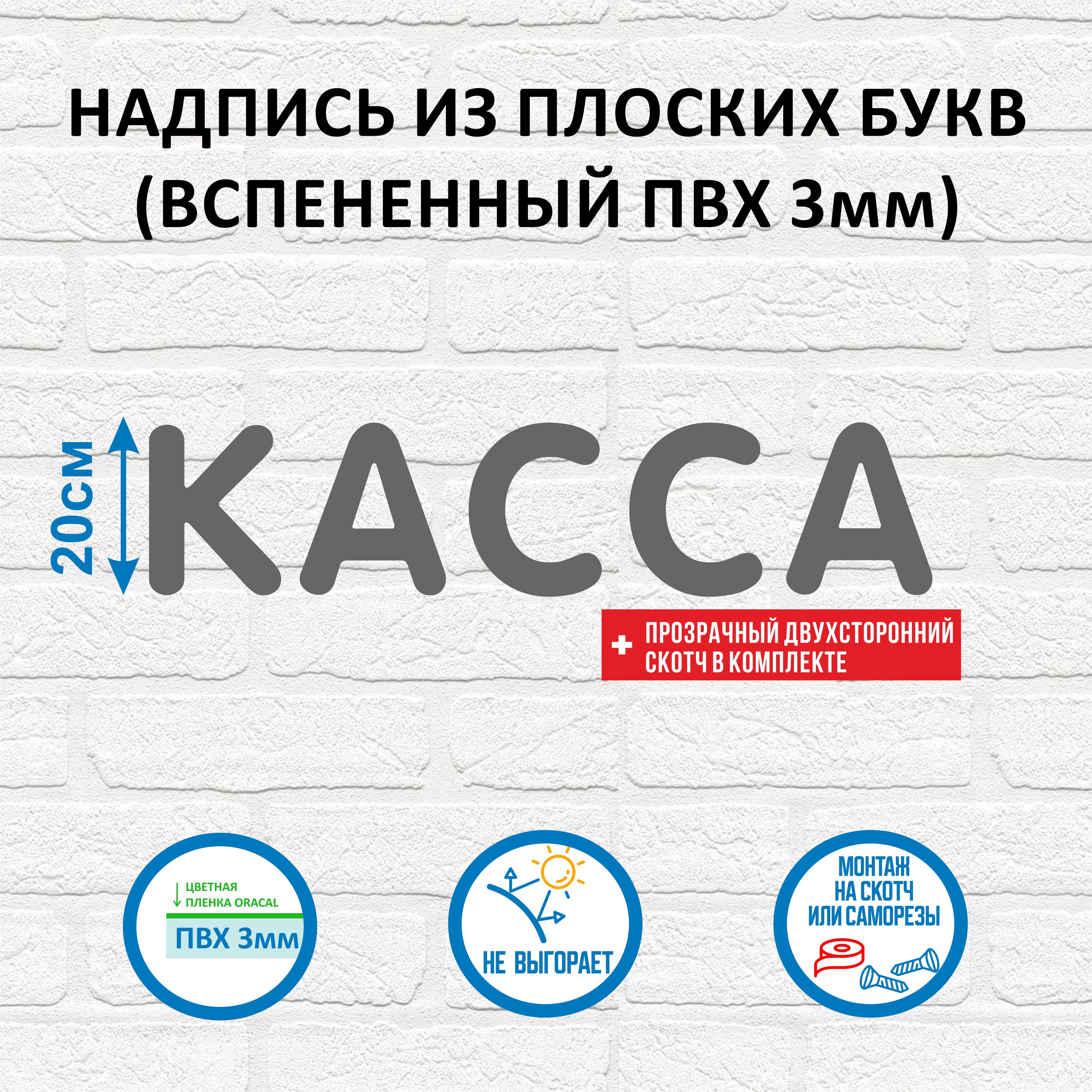 Вывеска-надпись из плоских букв ПВХ "Касса", буквы из пластика для оформления стойки с кассой