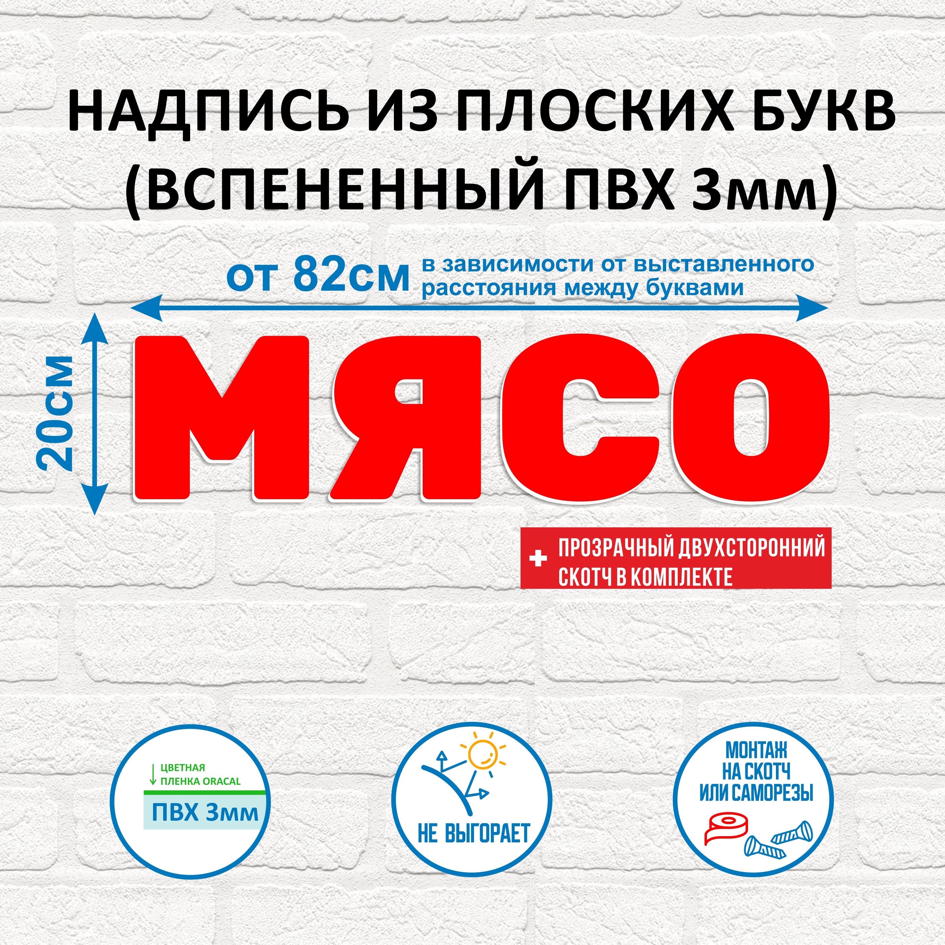 Главная / Каталог продукции / Вывески и оформление торговых точек / Вывеска-надпись из плоских букв ПВХ "Мясо", буквы из пластика для оформления мясного магазина