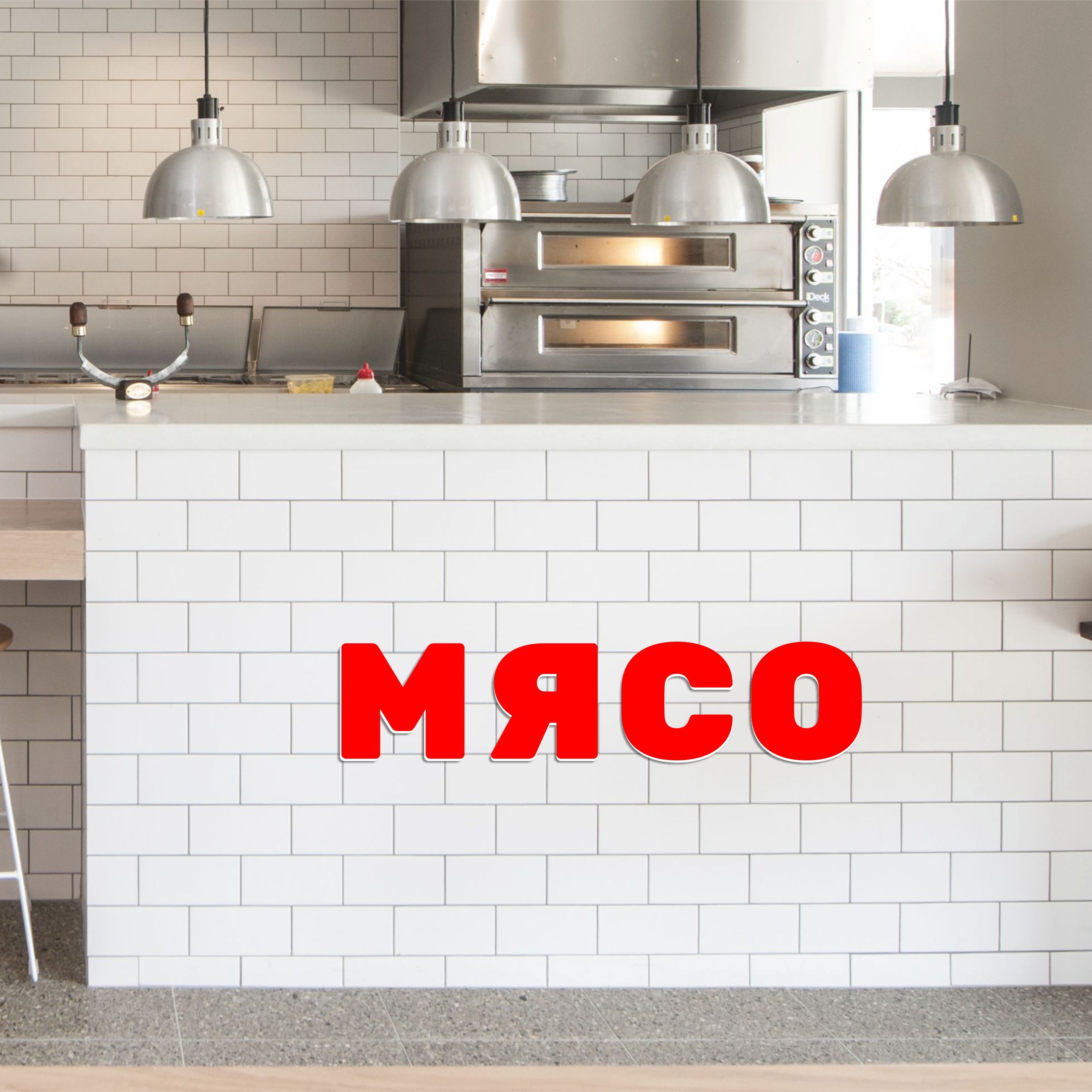 Вывеска-надпись из плоских букв ПВХ "Мясо", буквы из пластика для оформления мясного магазина