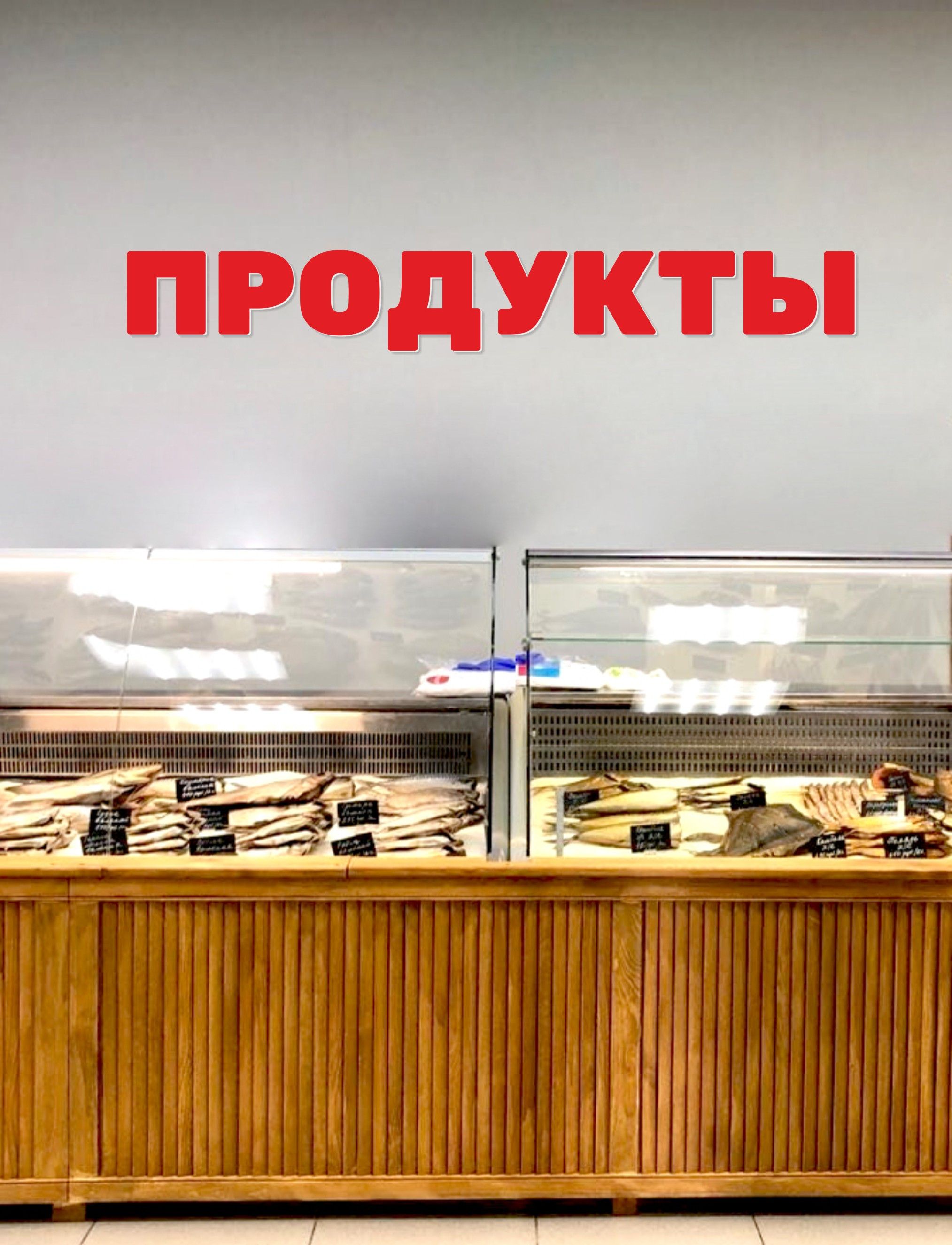 Главная / Каталог продукции / Вывески и оформление торговых точек / Вывеска-надпись из плоских букв ПВХ "Продукты", буквы из пластика для оформления продуктового магазина