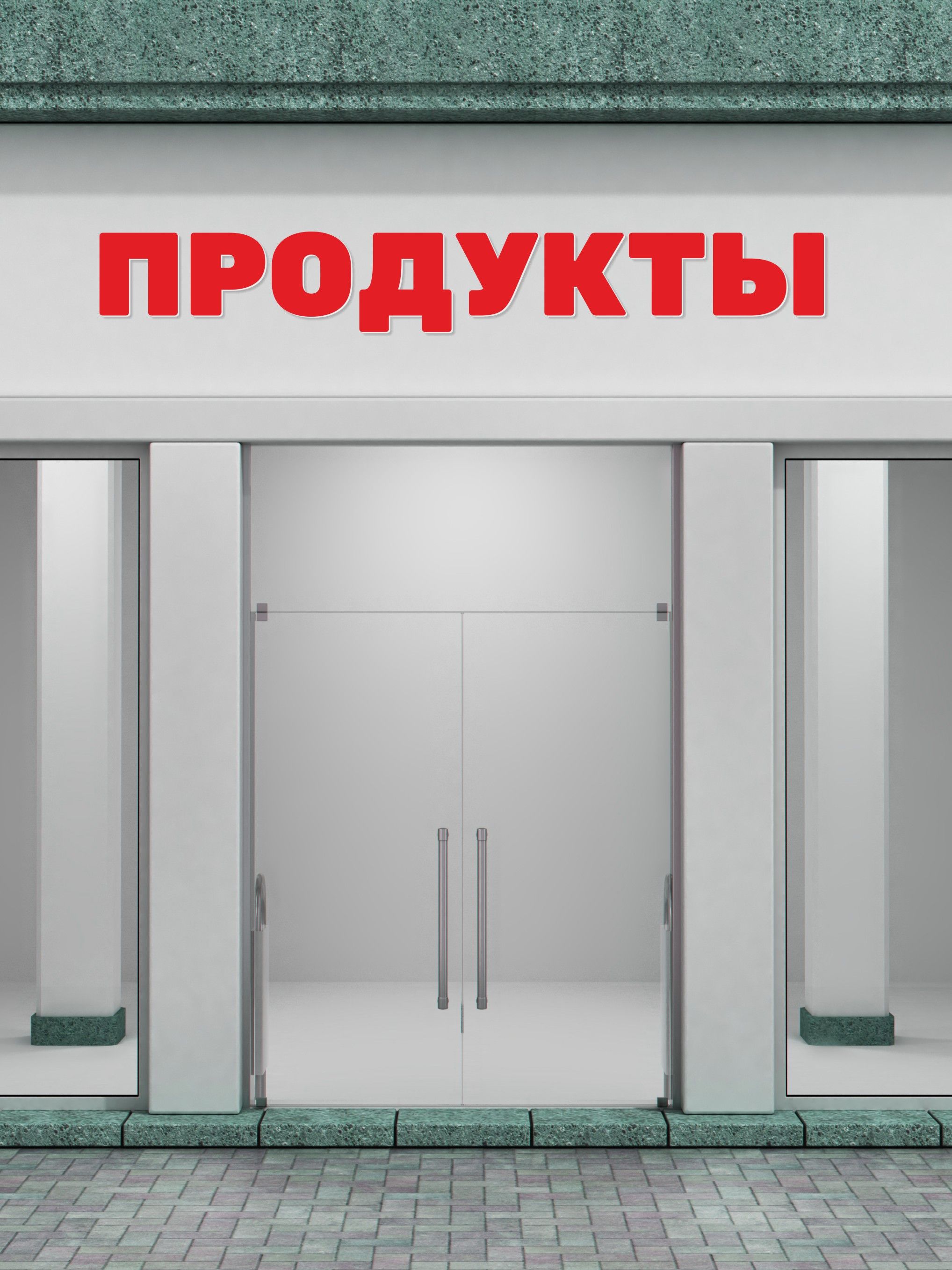 Вывеска-надпись из плоских букв ПВХ "Продукты", буквы из пластика для оформления продуктового магазина