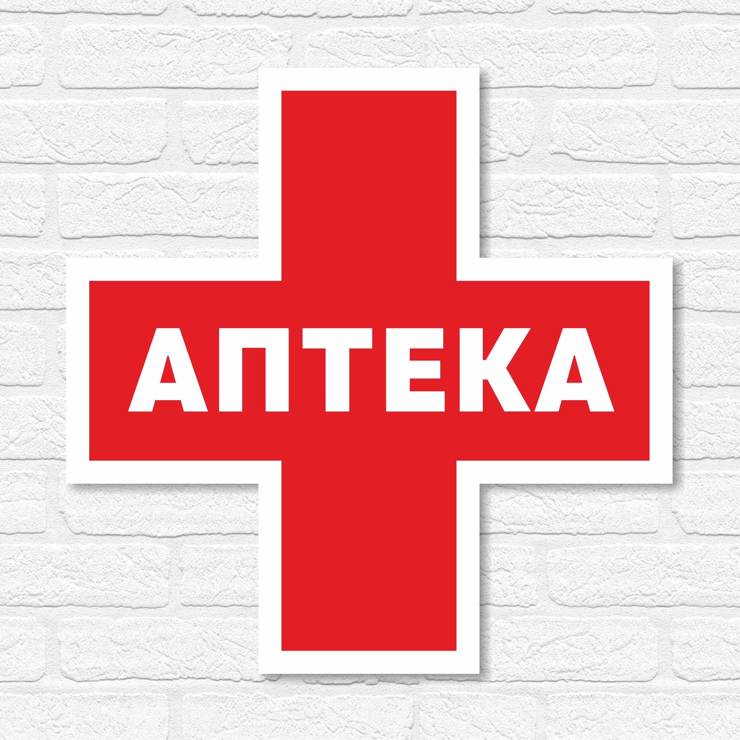 Вывеска несветовая из ПВХ пластика "Аптека", на окно, дверь и витрину
