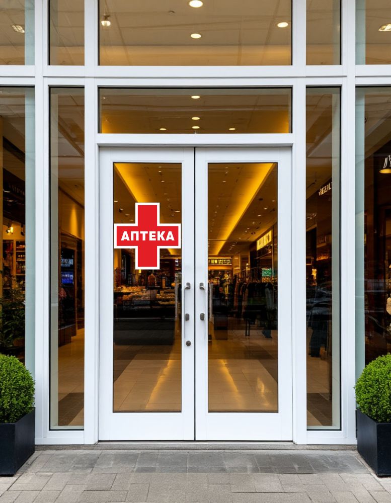 Главная / Каталог продукции / Вывески и оформление торговых точек / Вывеска несветовая из ПВХ пластика "Аптека", на окно, дверь и витрину