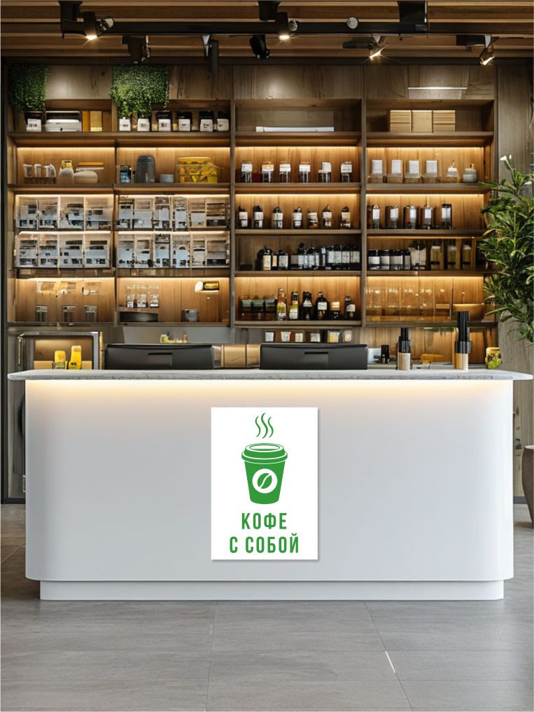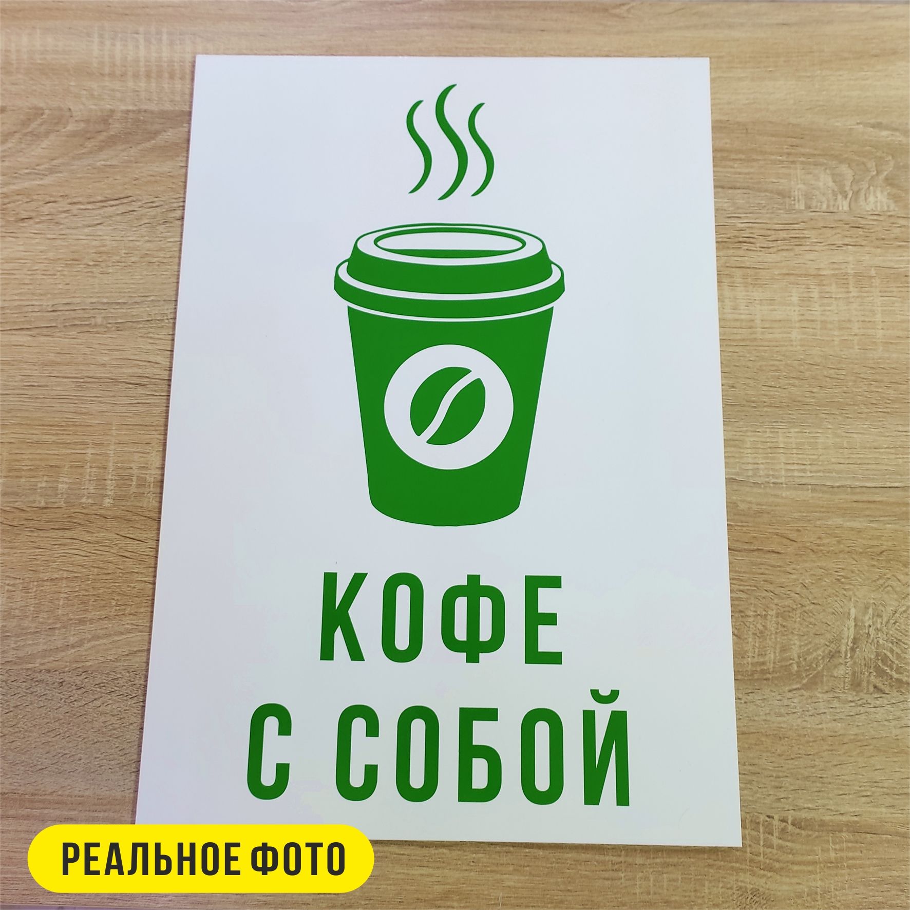 Вывеска несветовая из ПВХ пластика "Кофе с собой"
