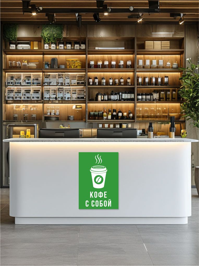 Вывеска несветовая из ПВХ пластика "Кофе с собой"