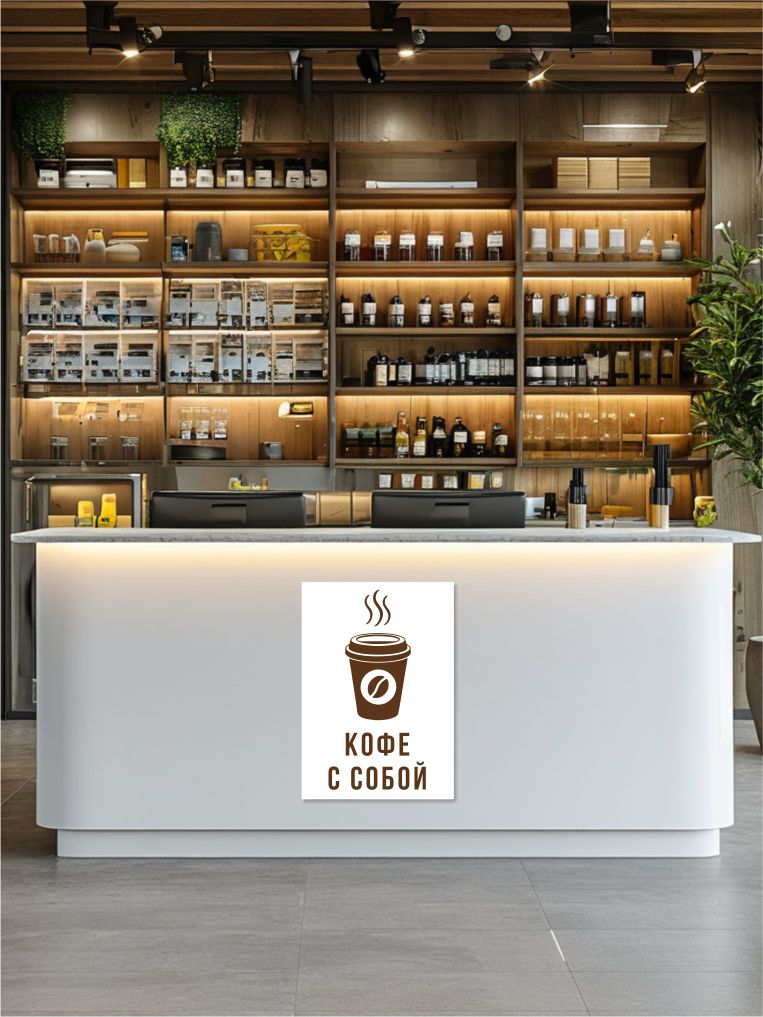 Вывеска несветовая из ПВХ пластика "Кофе с собой"