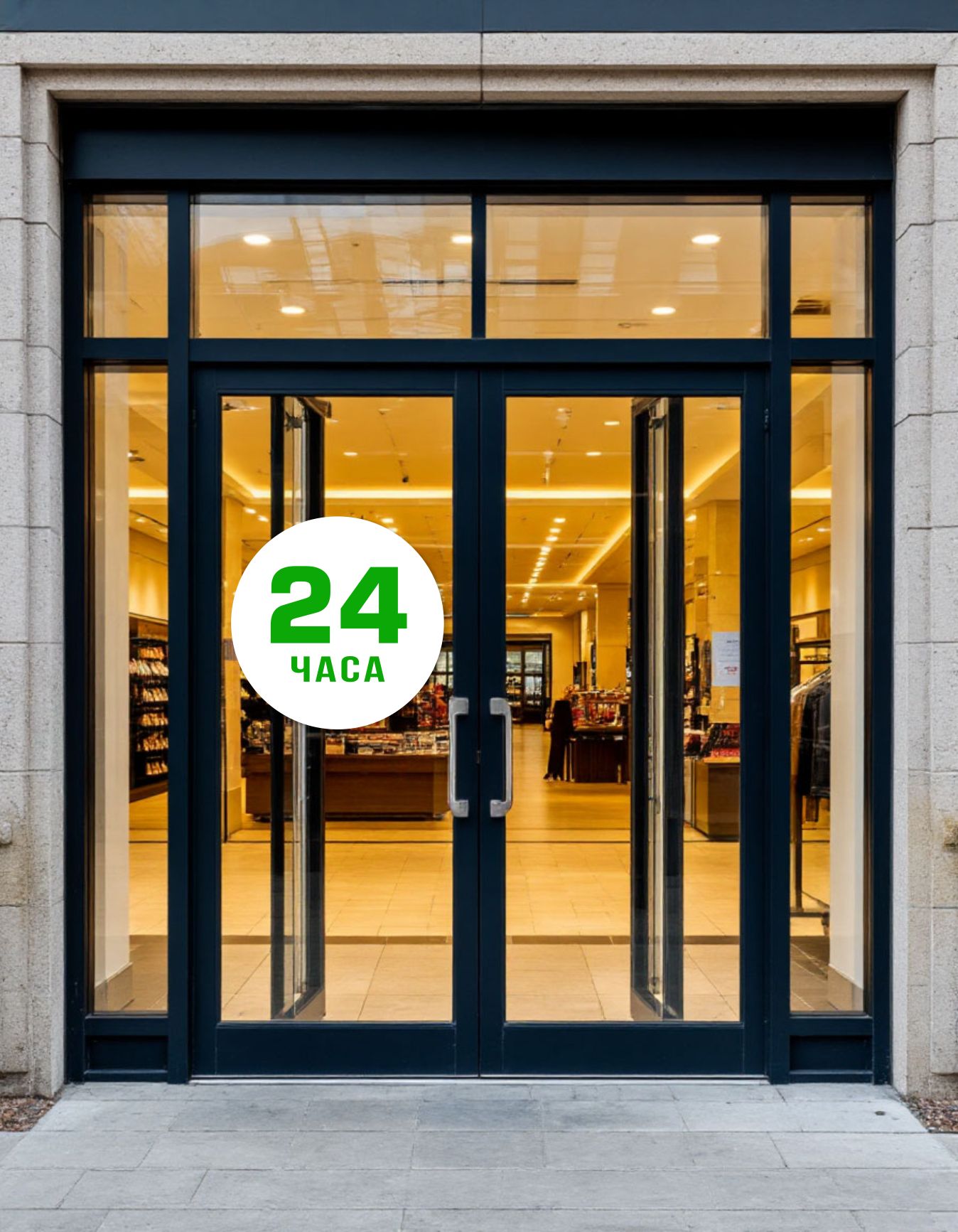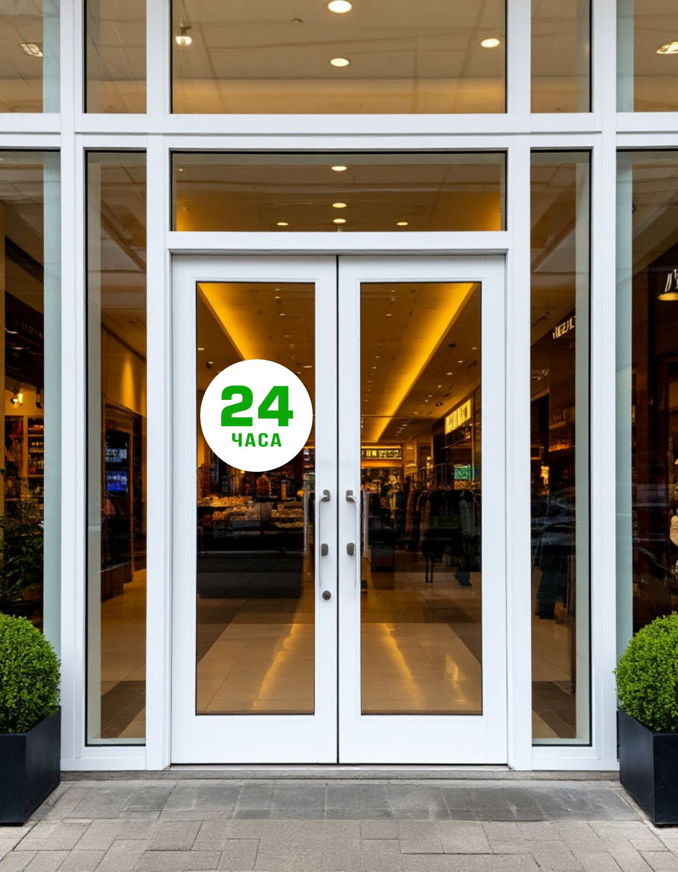 Вывеска несветовая круглая из ПВХ пластика "24 часа", для круглосуточного магазина
