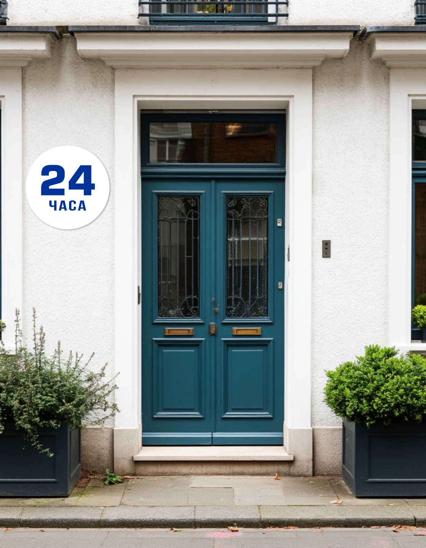 Вывеска несветовая круглая из ПВХ пластика "24 часа", для круглосуточного магазина