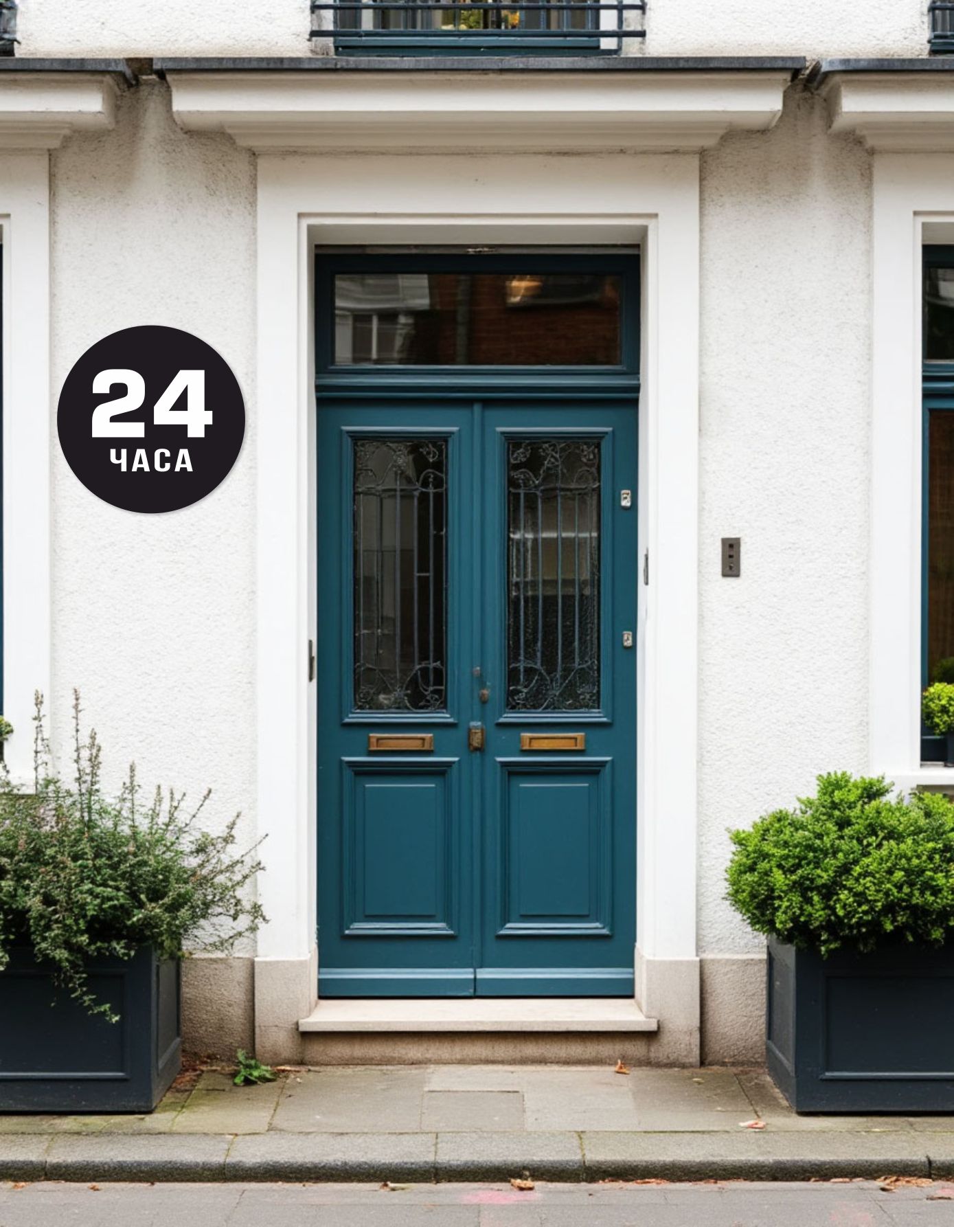 Вывеска несветовая круглая из ПВХ пластика "24 часа", для круглосуточного магазина