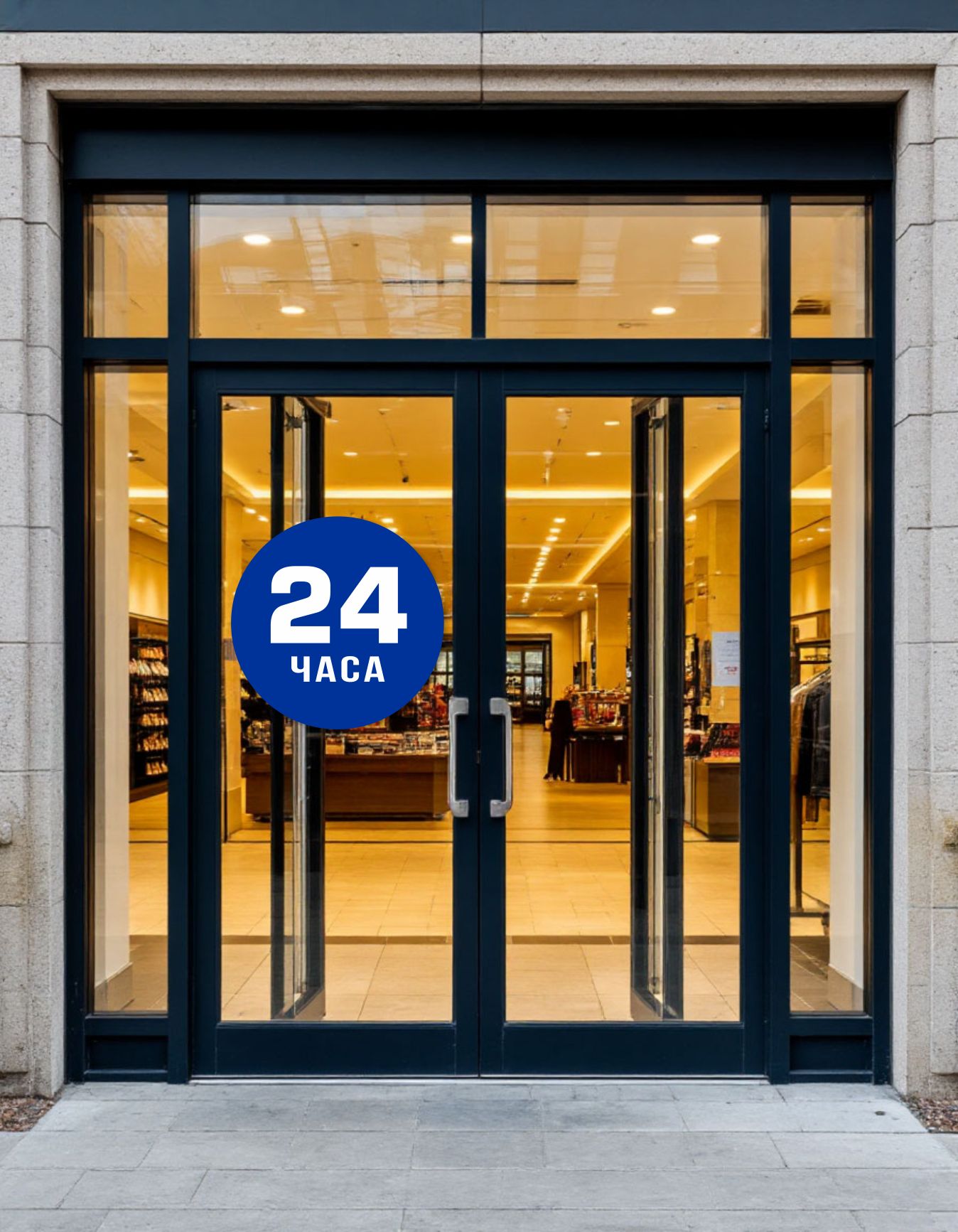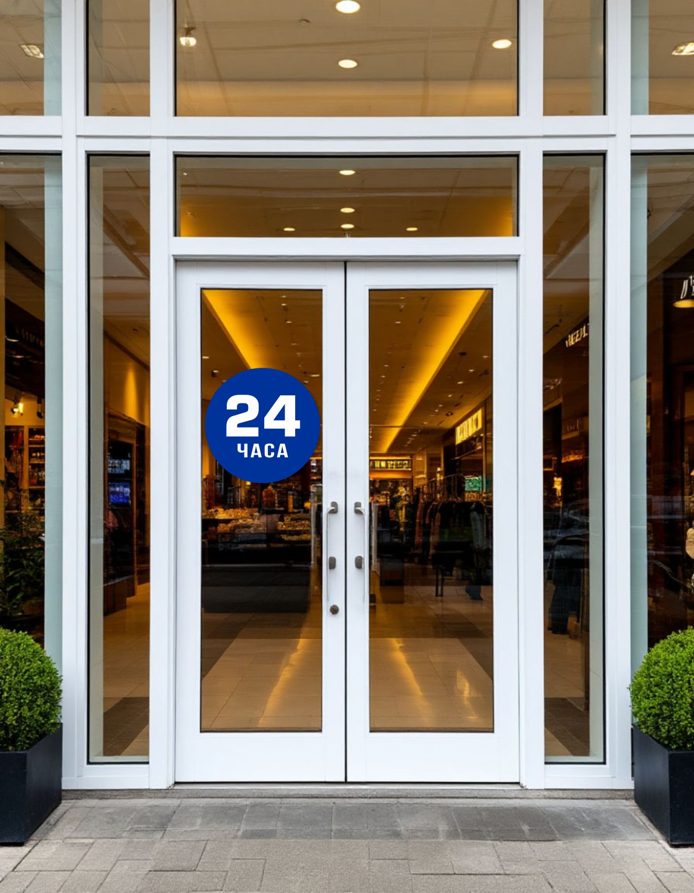 Вывеска несветовая круглая из ПВХ пластика "24 часа", для круглосуточного магазина