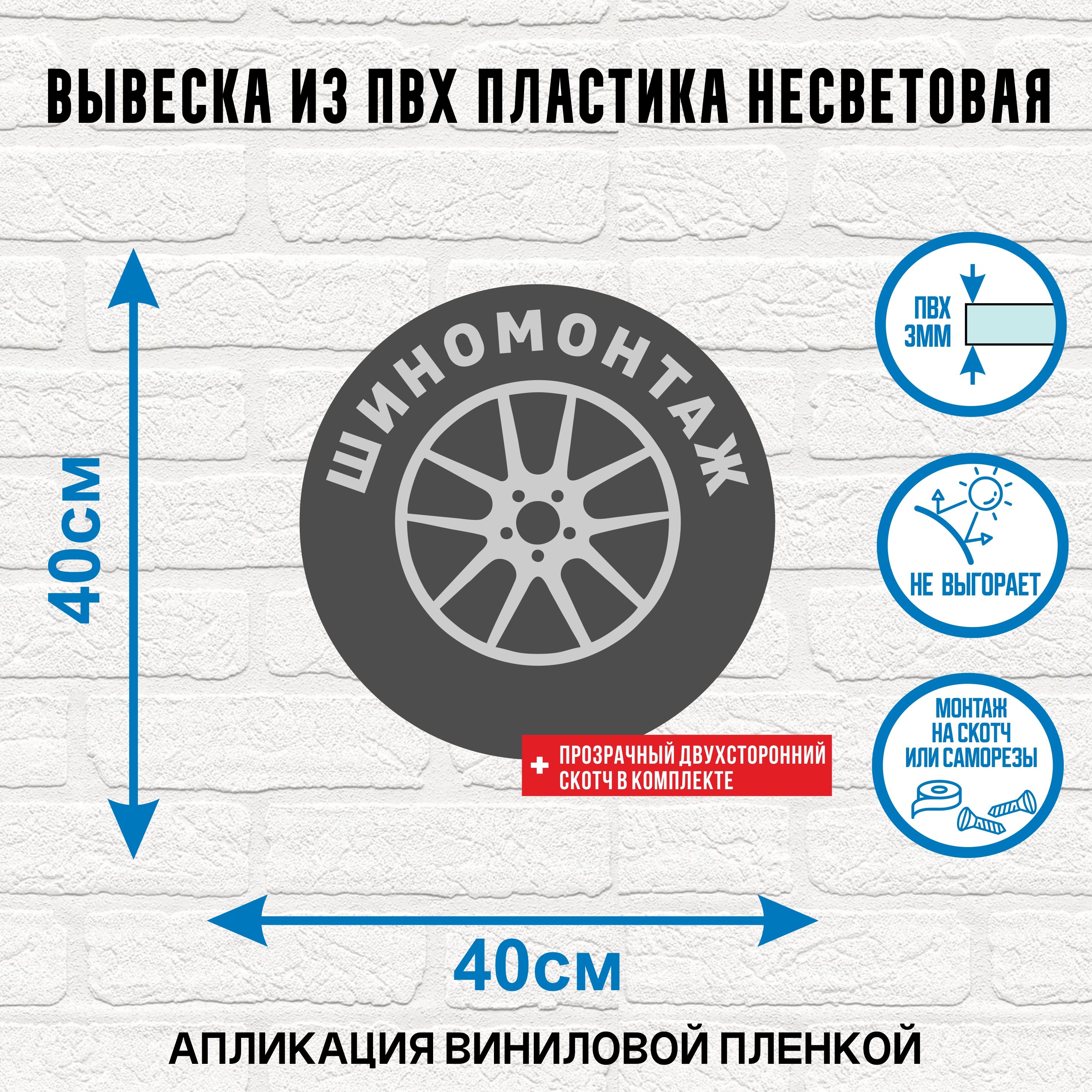 Главная / Каталог продукции / Вывески и оформление торговых точек / Вывеска несветовая круглая из ПВХ пластика 3мм "Шиномонтаж"