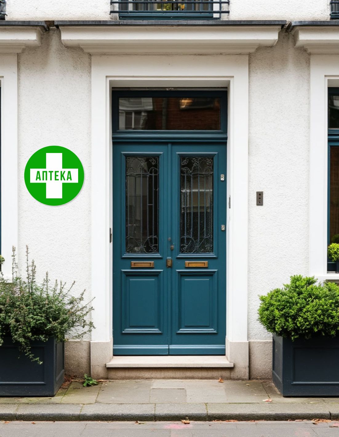 Главная / Каталог продукции / Вывески и оформление торговых точек / Вывеска несветовая круглая из ПВХ пластика "Аптека"