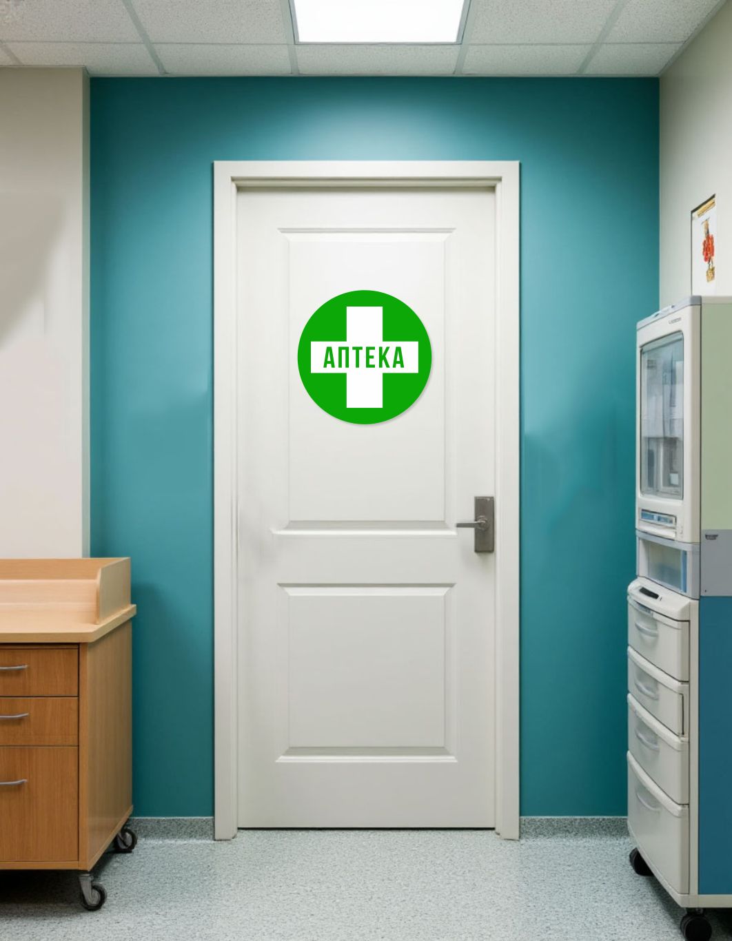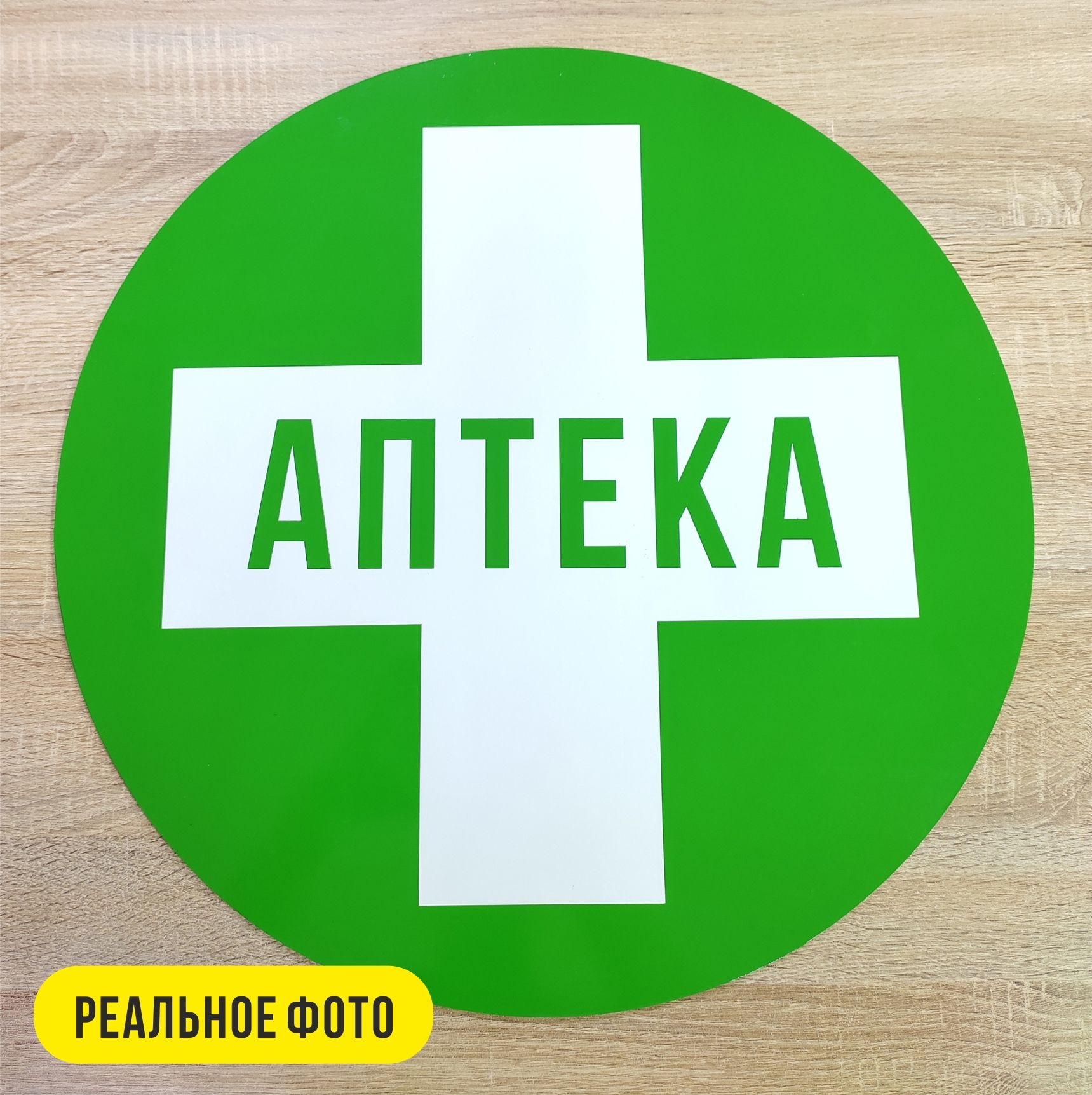 Вывеска несветовая круглая из ПВХ пластика "Аптека"