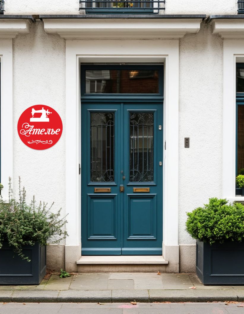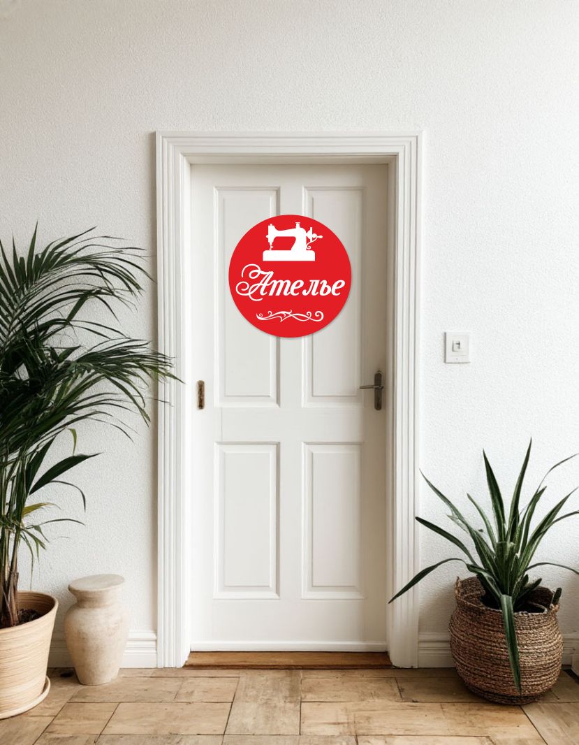 Вывеска несветовая круглая из ПВХ пластика "Ателье", для швейной мастерской по пошиву