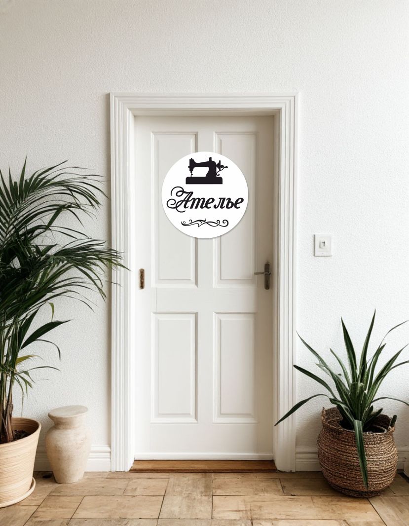 Вывеска несветовая круглая из ПВХ пластика "Ателье", для швейной мастерской по пошиву