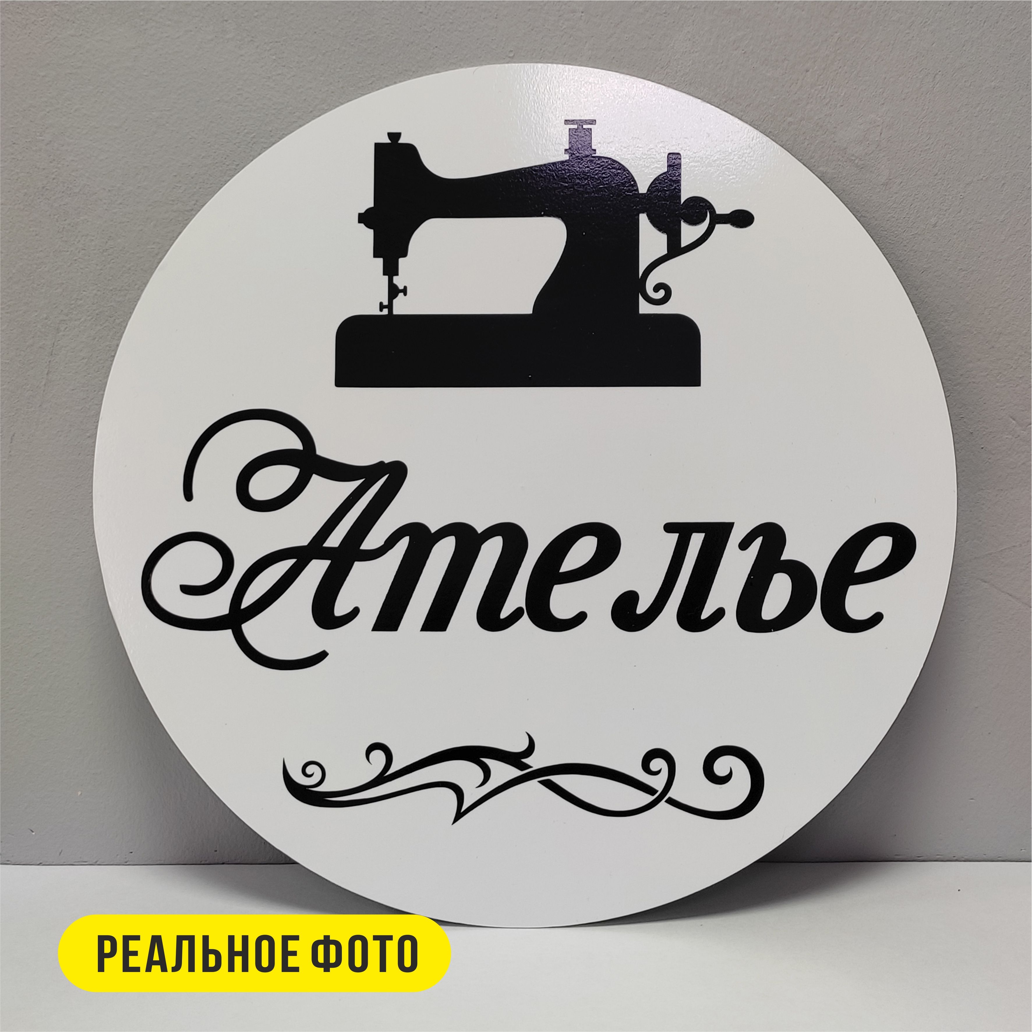 Главная / Каталог продукции / Вывески и оформление торговых точек / Вывеска несветовая круглая из ПВХ пластика "Ателье", для швейной мастерской по пошиву