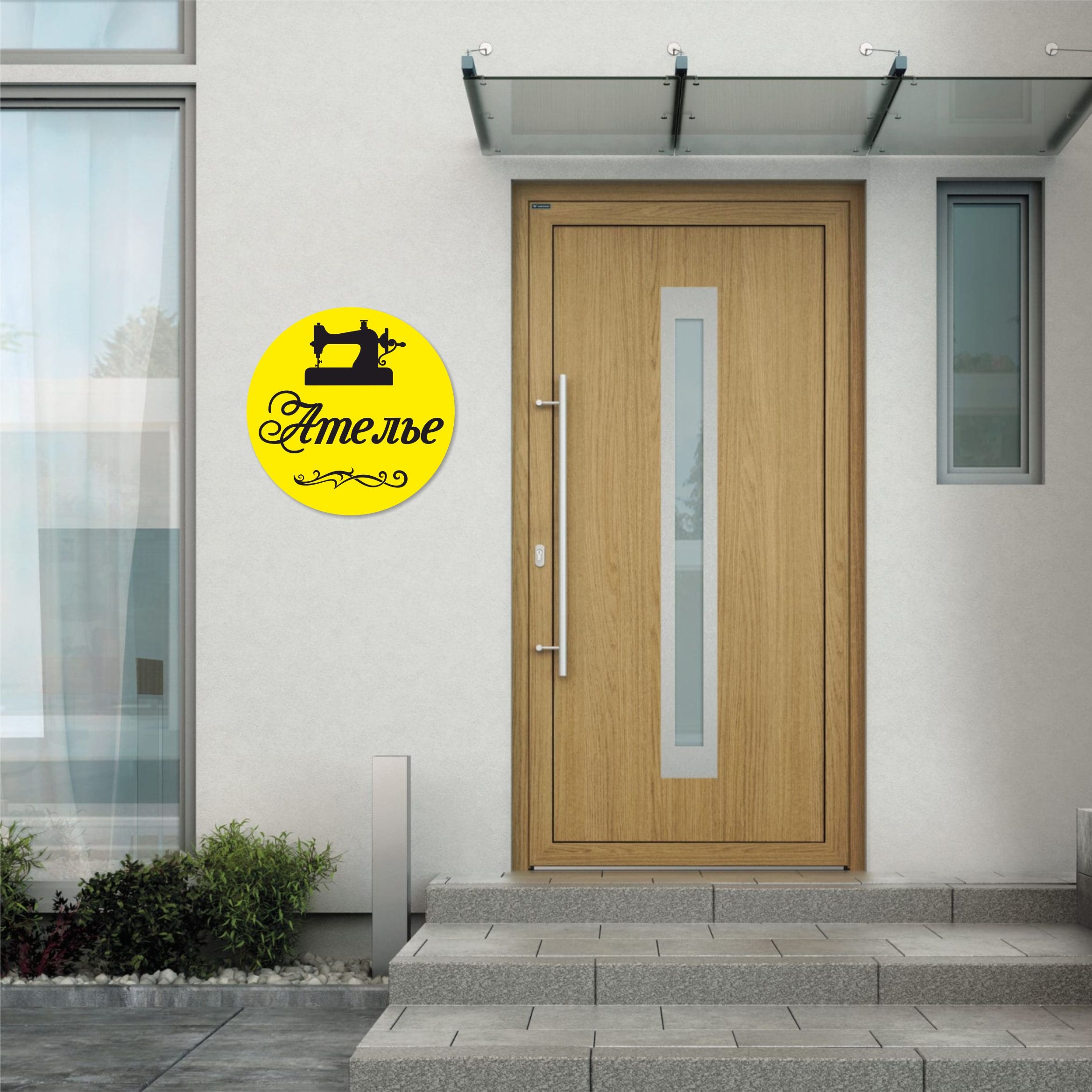 Вывеска несветовая круглая из ПВХ пластика "Ателье", для швейной мастерской по пошиву
