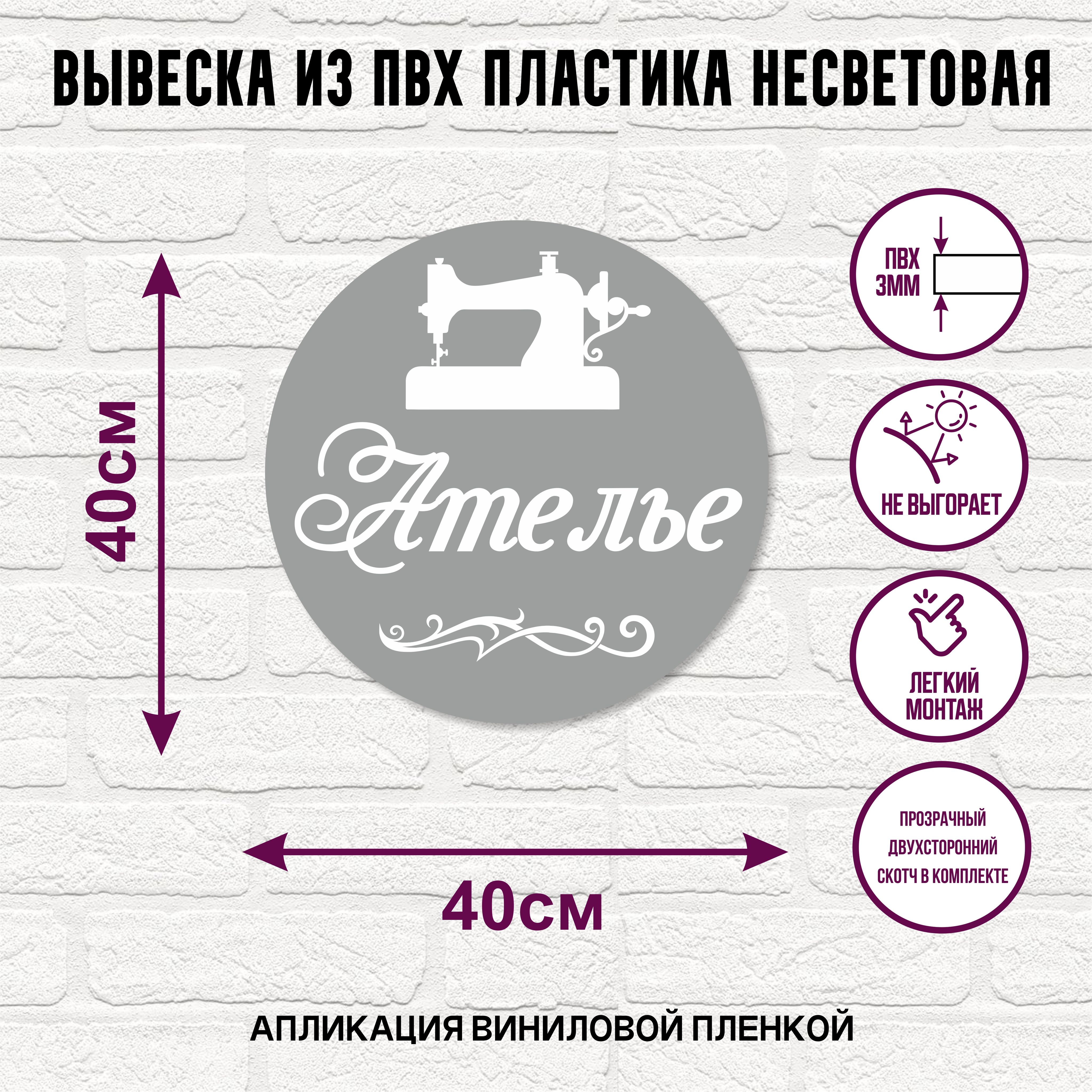 Главная / Каталог продукции / Вывески и оформление торговых точек / Вывеска несветовая круглая из ПВХ пластика "Ателье", для швейной мастерской по пошиву