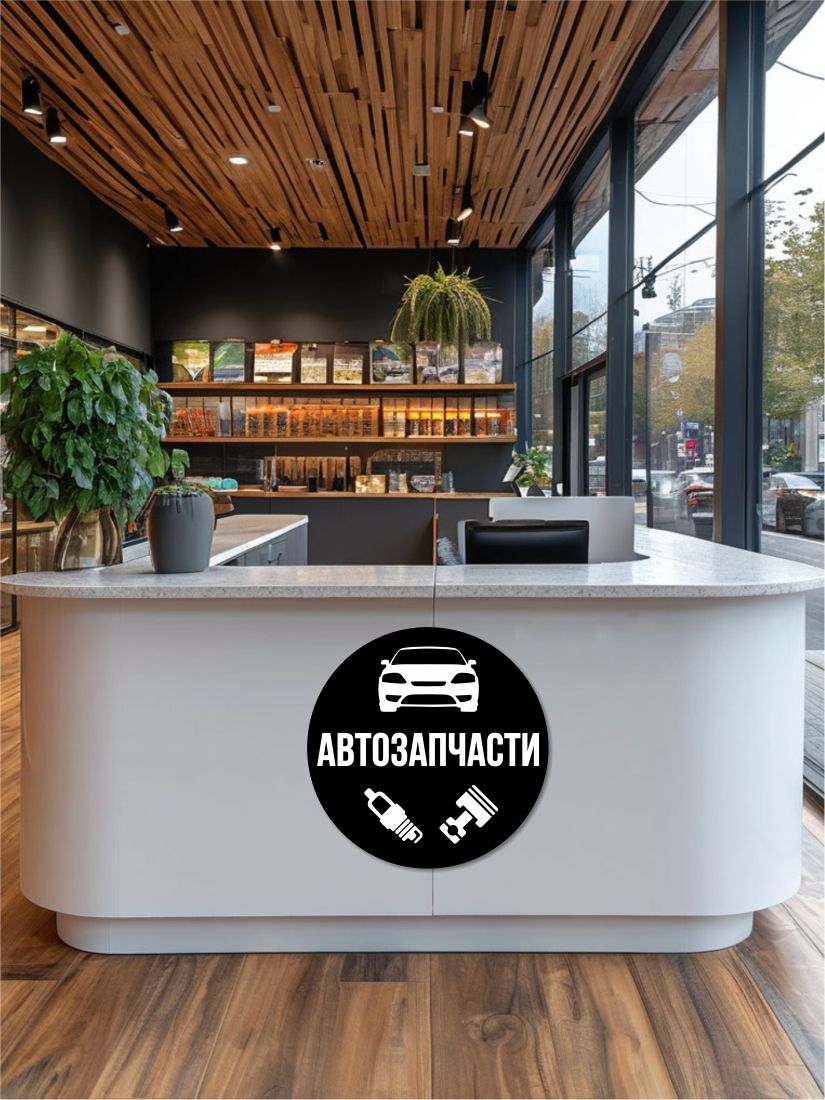Вывеска несветовая круглая из ПВХ пластика "Автозапчасти", для магазина автомобильных запчастей и комплектующих