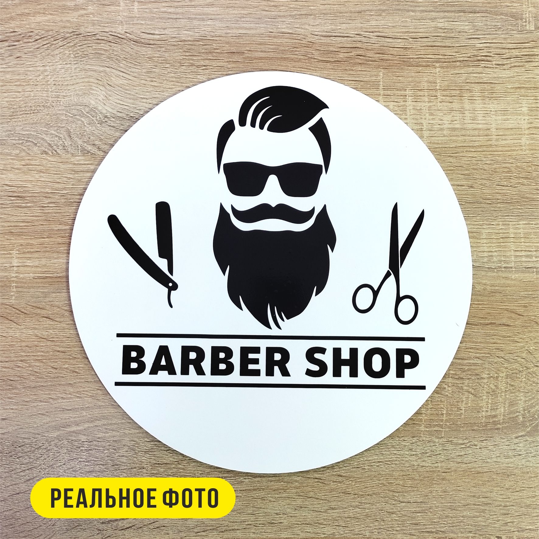 Вывеска несветовая круглая из ПВХ пластика "Barbershop, барбершоп"