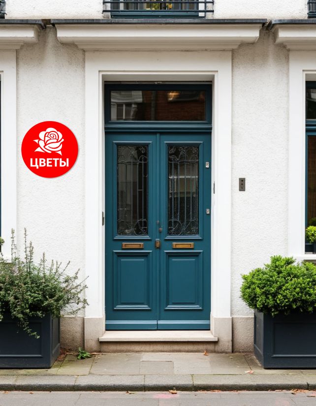 Вывеска несветовая круглая из ПВХ пластика "Цветы", для цветочного магазина