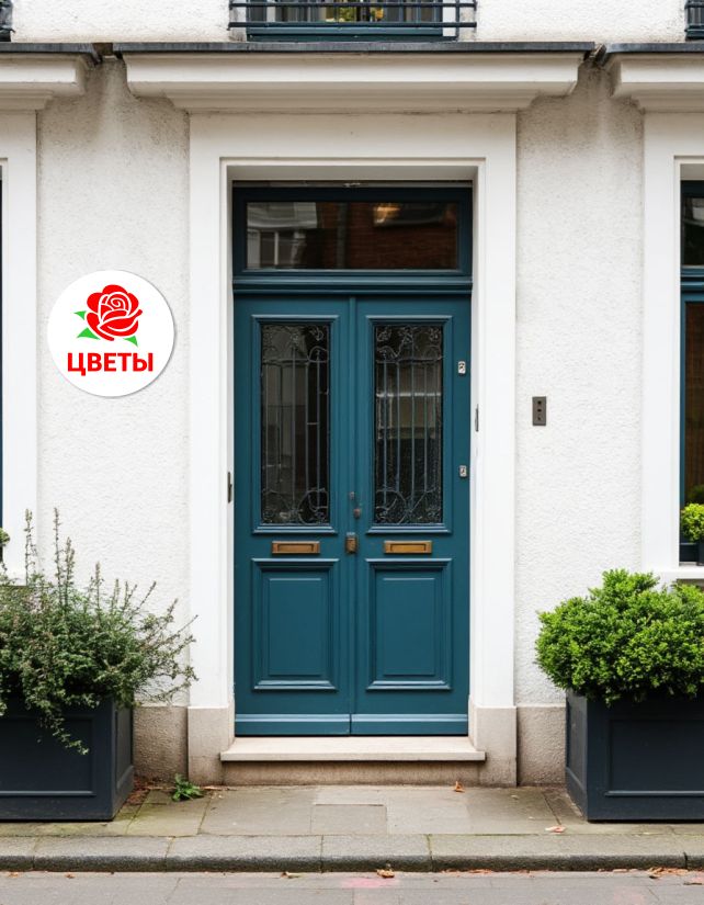 Вывеска несветовая круглая из ПВХ пластика "Цветы", для цветочного магазина