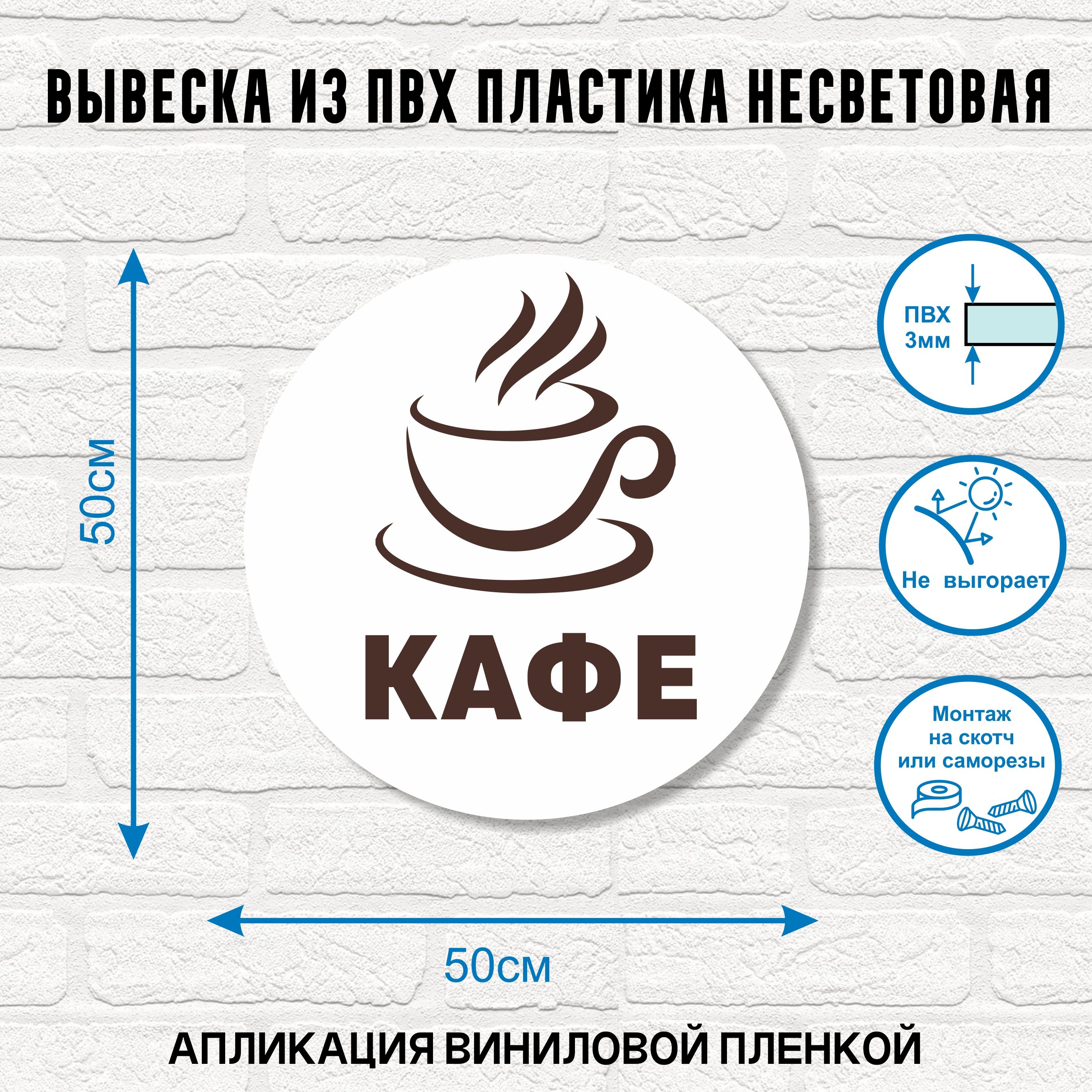 Вывеска несветовая круглая из ПВХ пластика "Кафе"