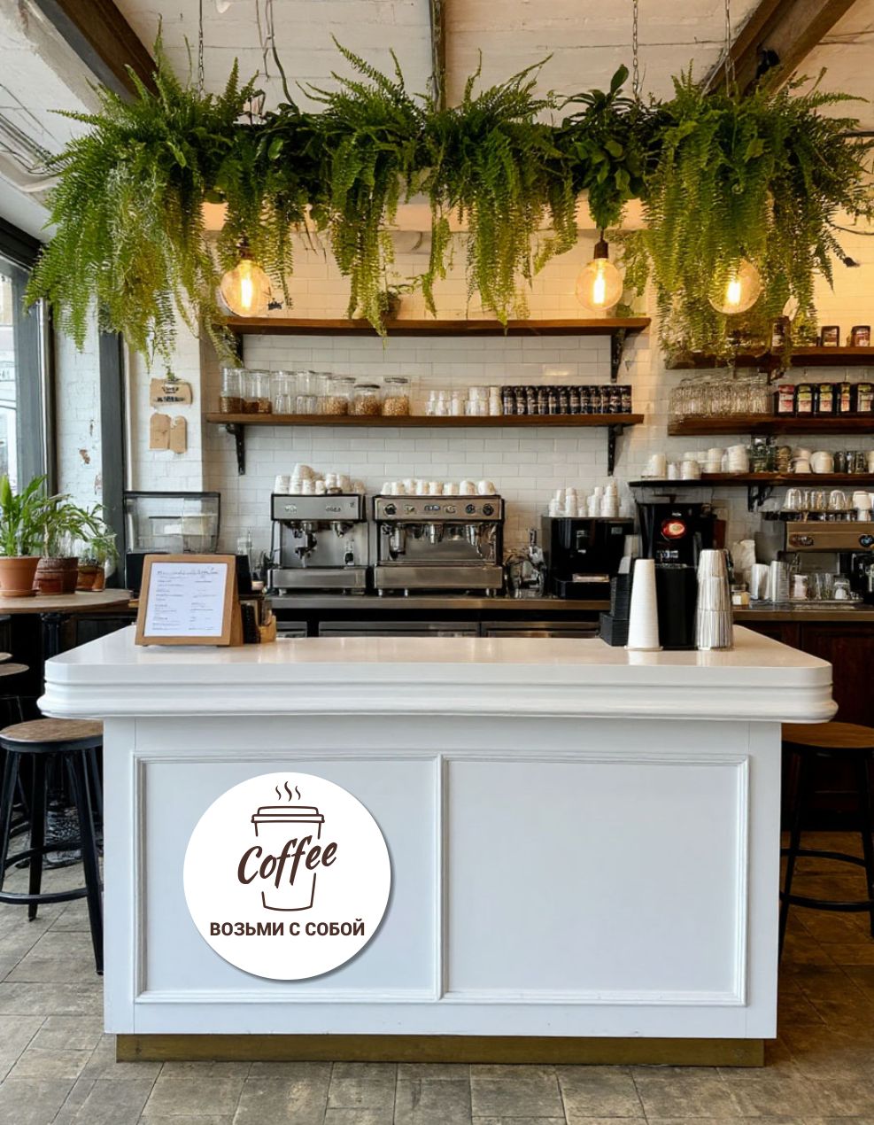 Главная / Каталог продукции / Вывески и оформление торговых точек / Вывеска несветовая круглая из ПВХ пластика "Кофе с собой"