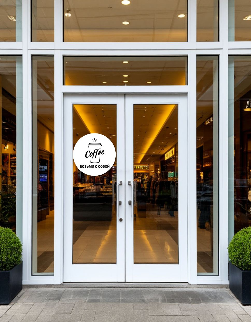 Вывеска несветовая круглая из ПВХ пластика "Кофе с собой"