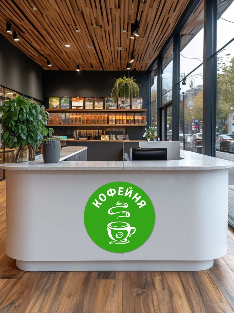 Вывеска несветовая круглая из ПВХ пластика "Кофейня" для кафе или кофе с собой