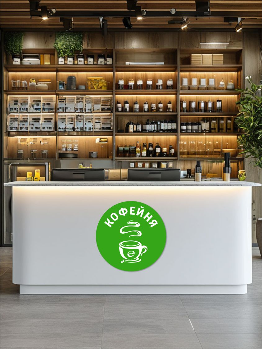 Главная / Каталог продукции / Вывески и оформление торговых точек / Вывеска несветовая круглая из ПВХ пластика "Кофейня" для кафе или кофе с собой