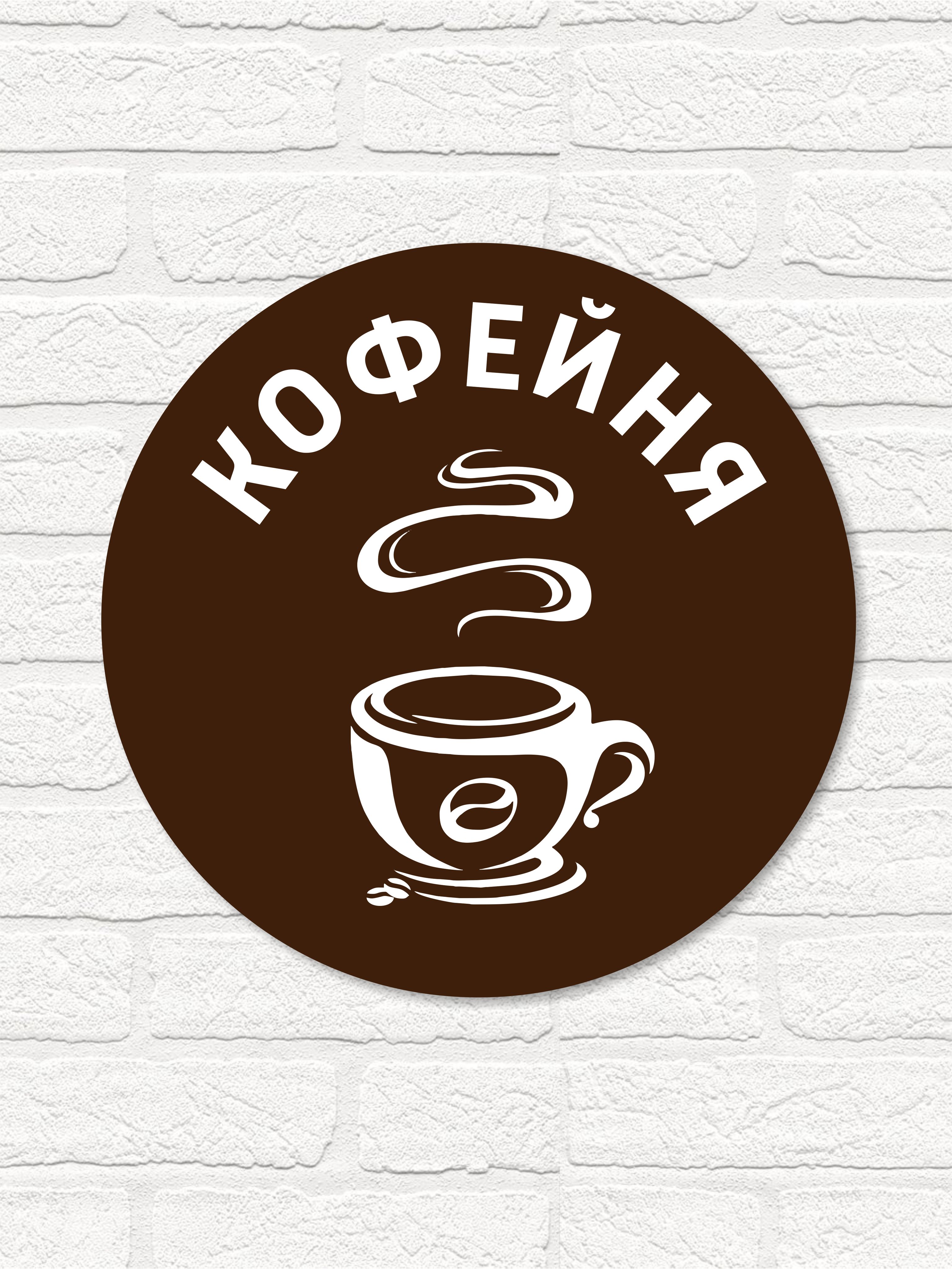 Вывеска несветовая круглая из ПВХ пластика "Кофейня" для кафе или кофе с собой