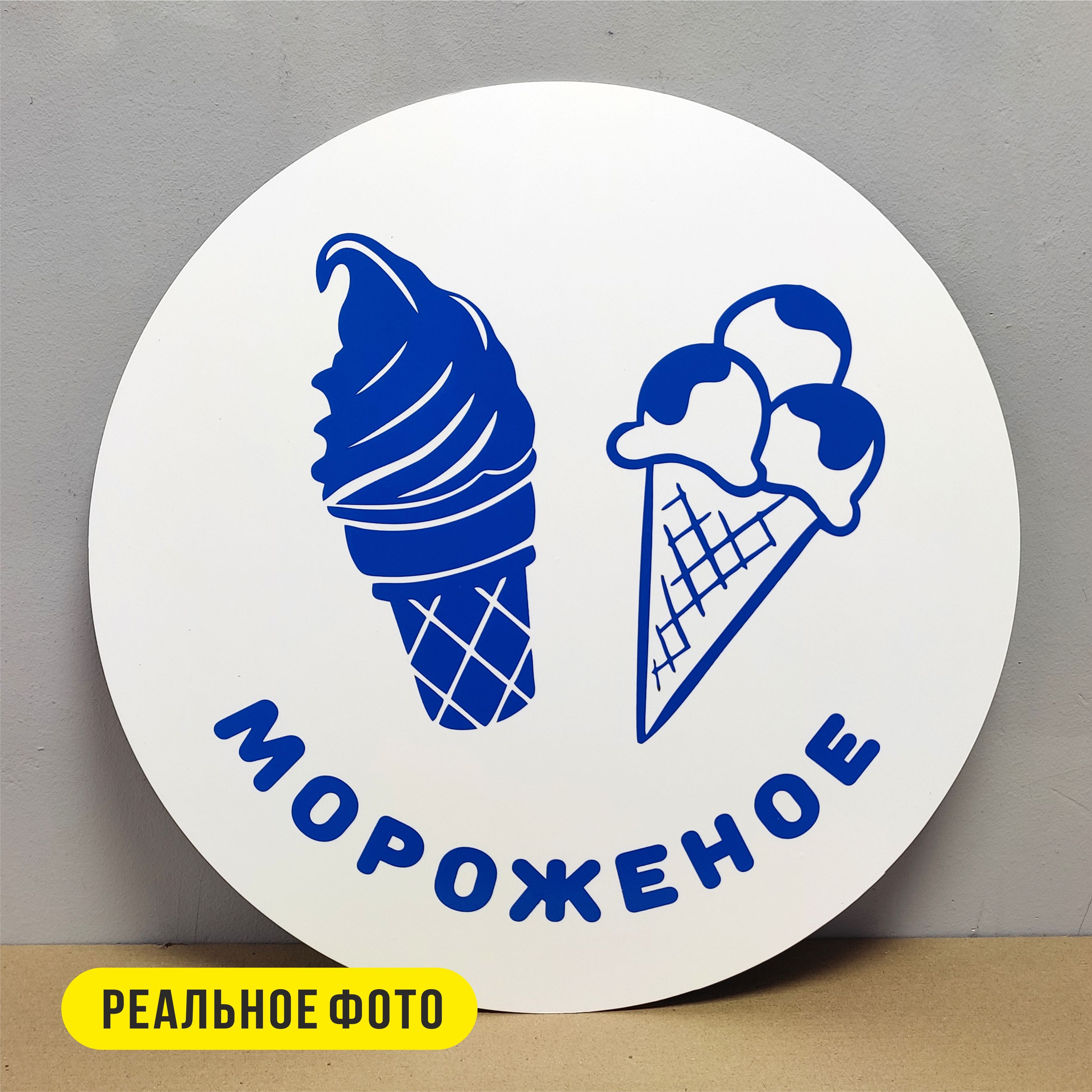 Главная / Каталог продукции / Вывески и оформление торговых точек / Вывеска несветовая круглая из ПВХ пластика "Мороженое"