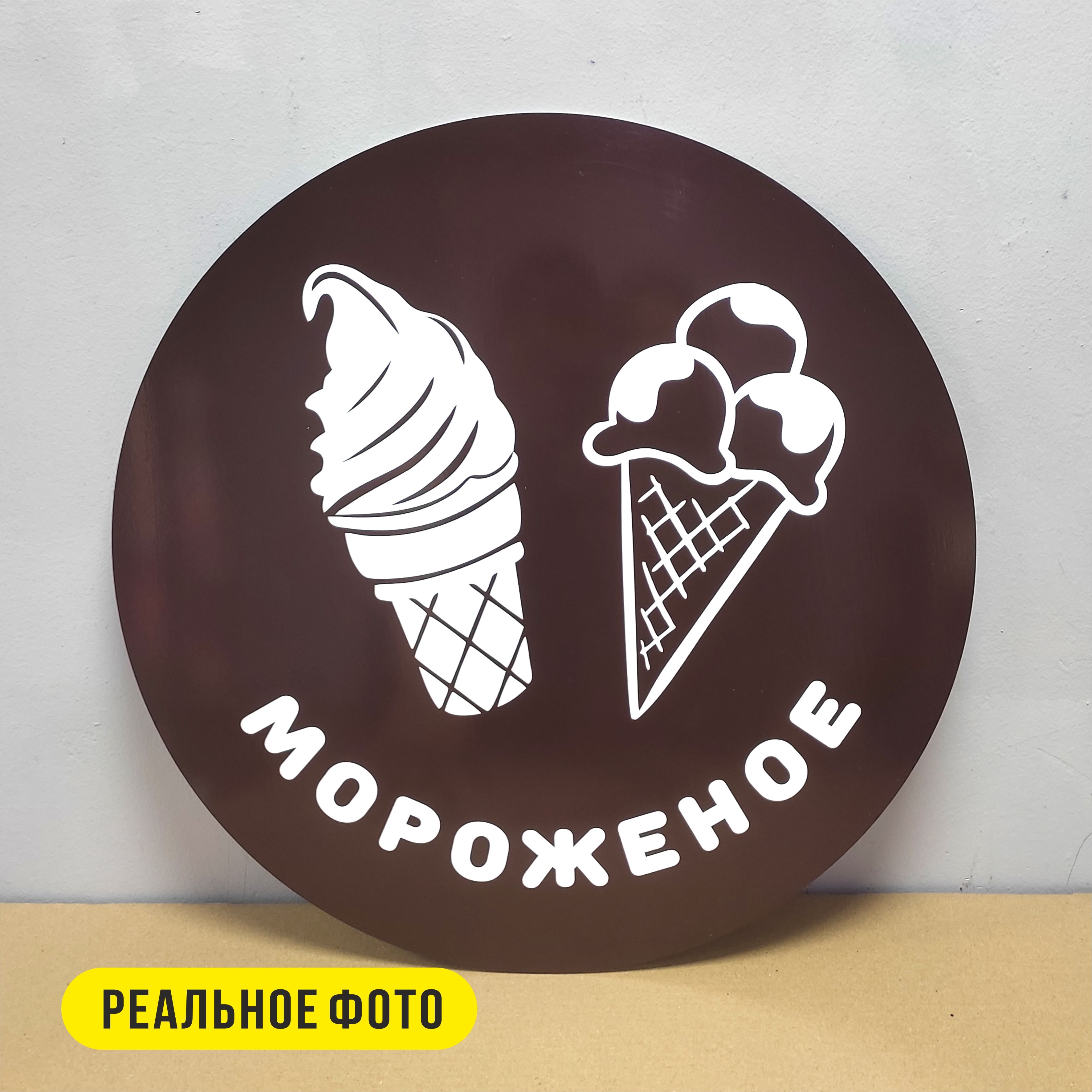 Вывеска несветовая круглая из ПВХ пластика "Мороженое"