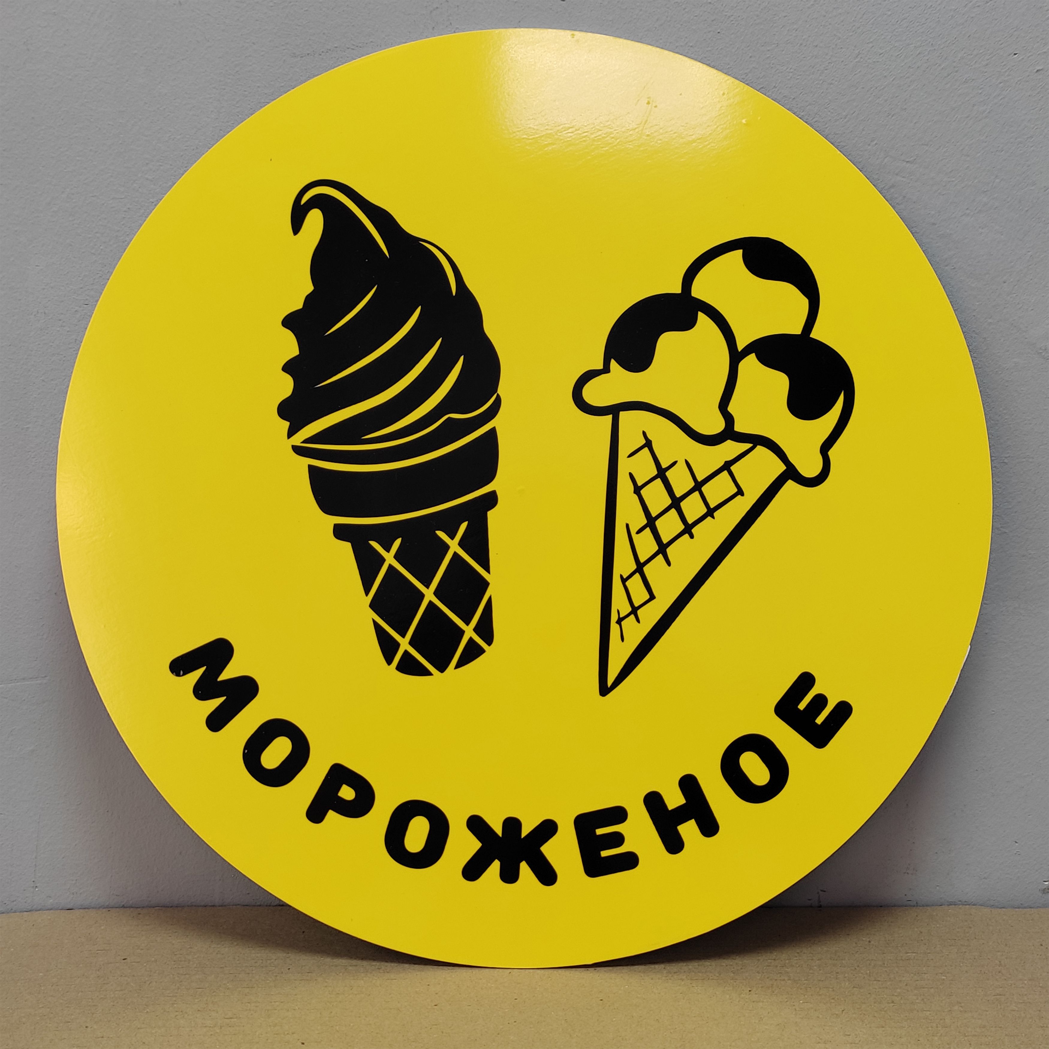 Главная / Каталог продукции / Вывески и оформление торговых точек / Вывеска несветовая круглая из ПВХ пластика "Мороженое"
