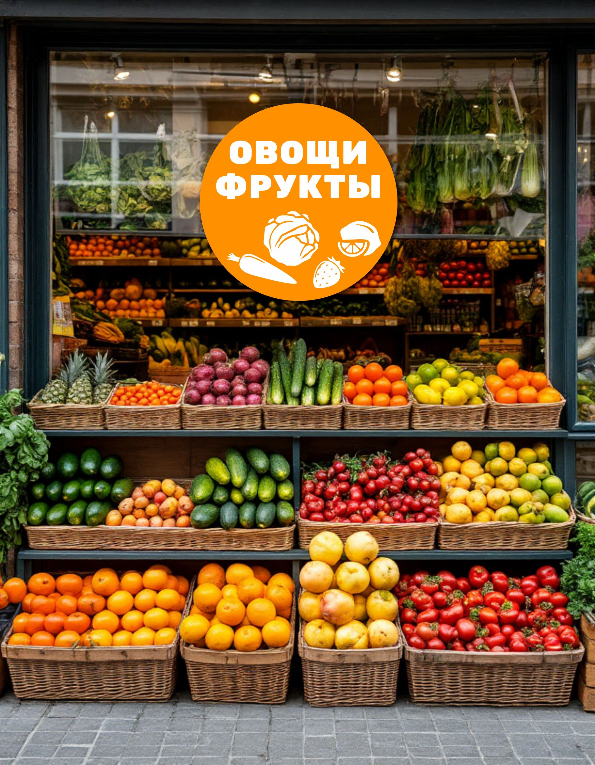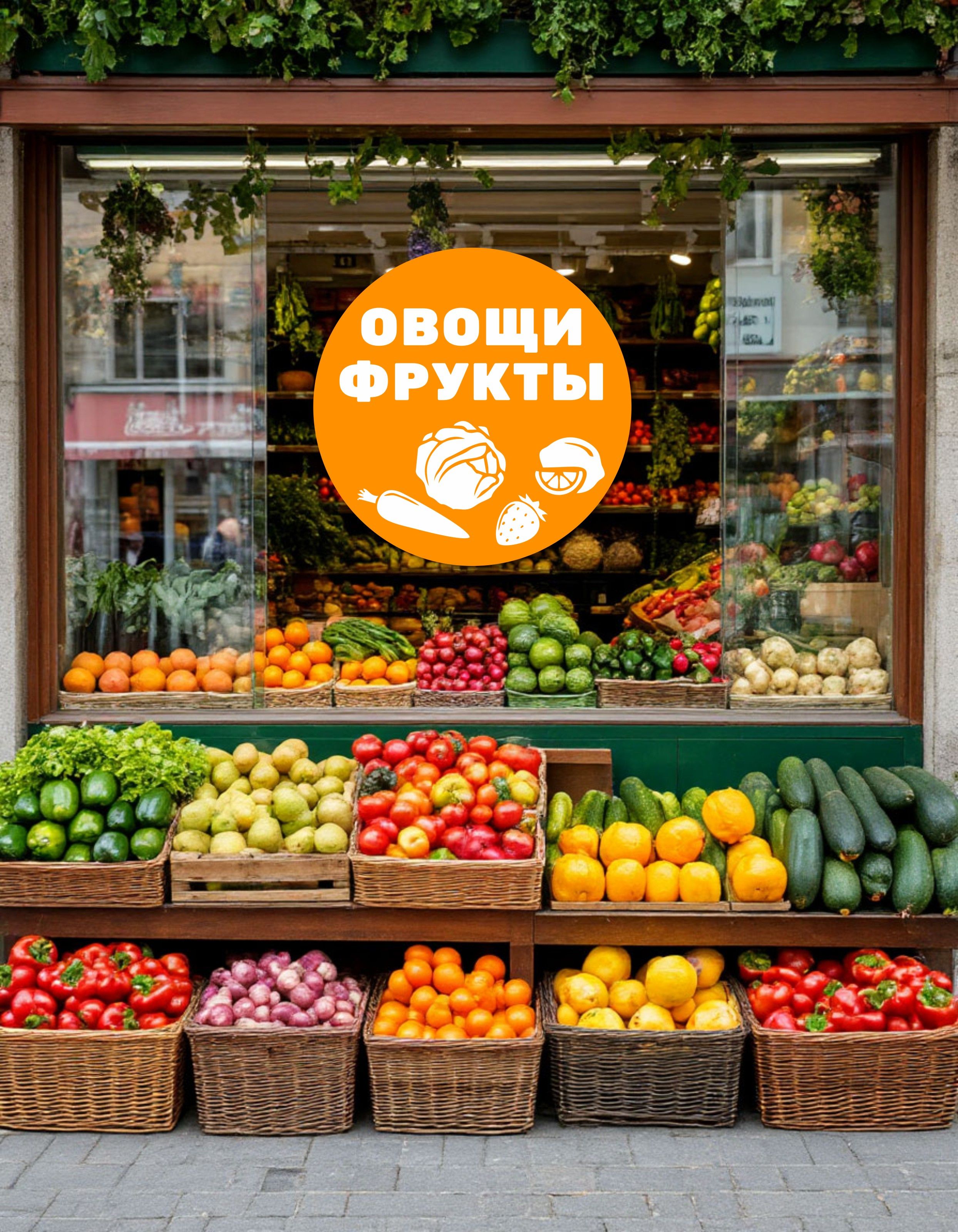 Вывеска несветовая круглая из ПВХ пластика "Овощи и фрукты" для магазина свежих продуктов