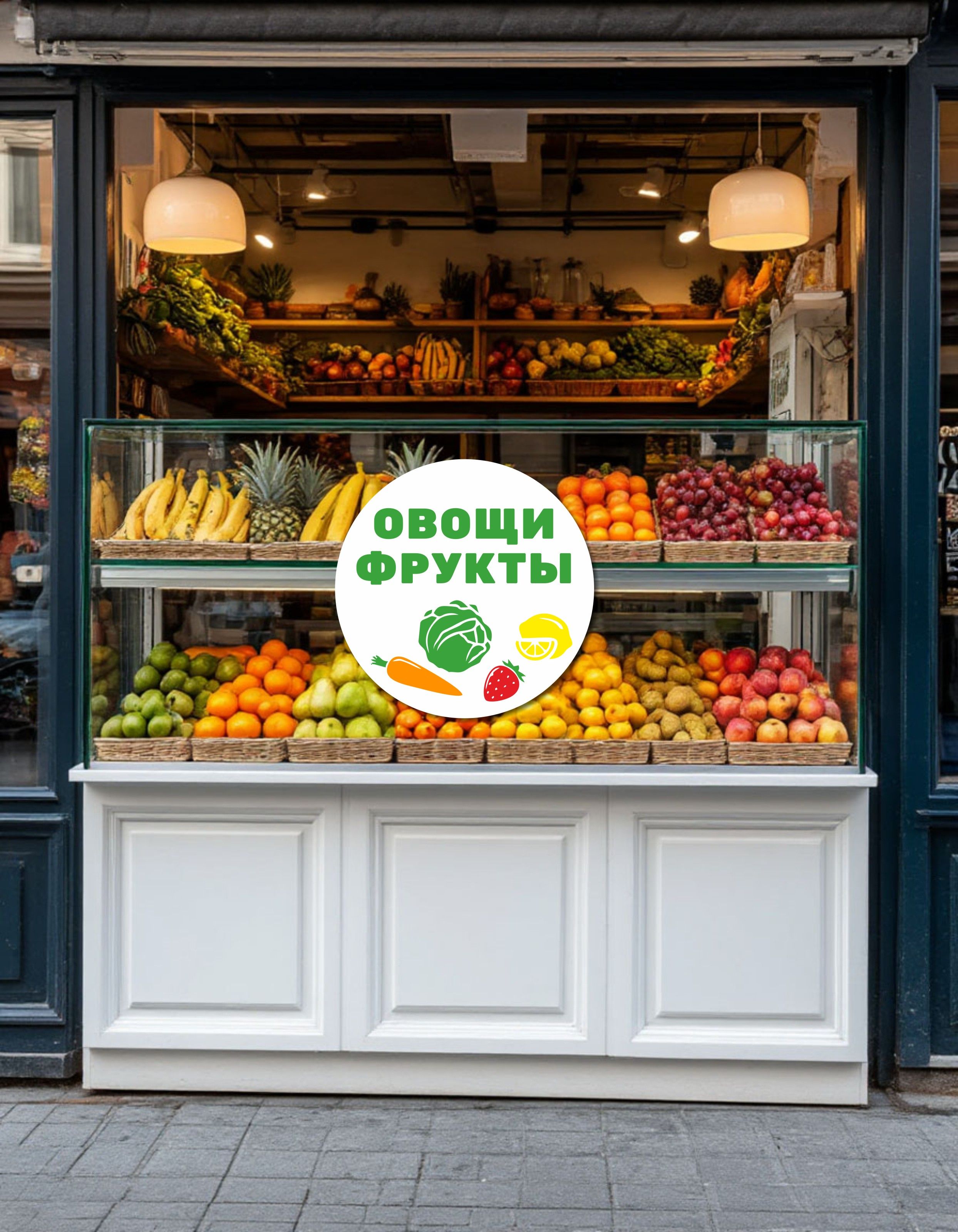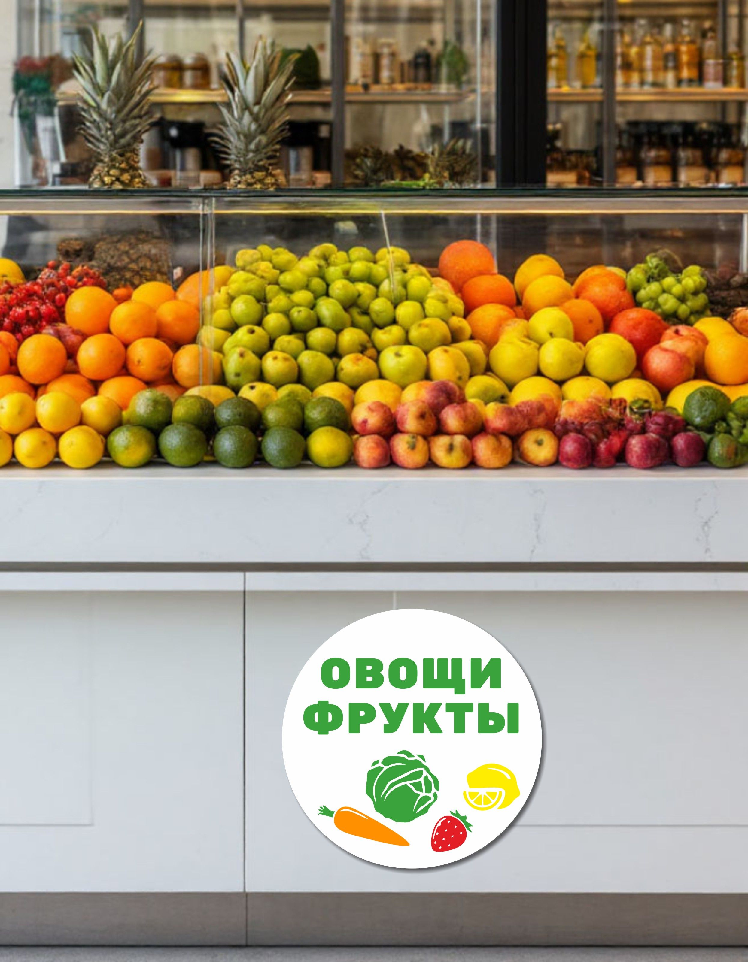 Вывеска несветовая круглая из ПВХ пластика "Овощи и фрукты" для магазина свежих продуктов