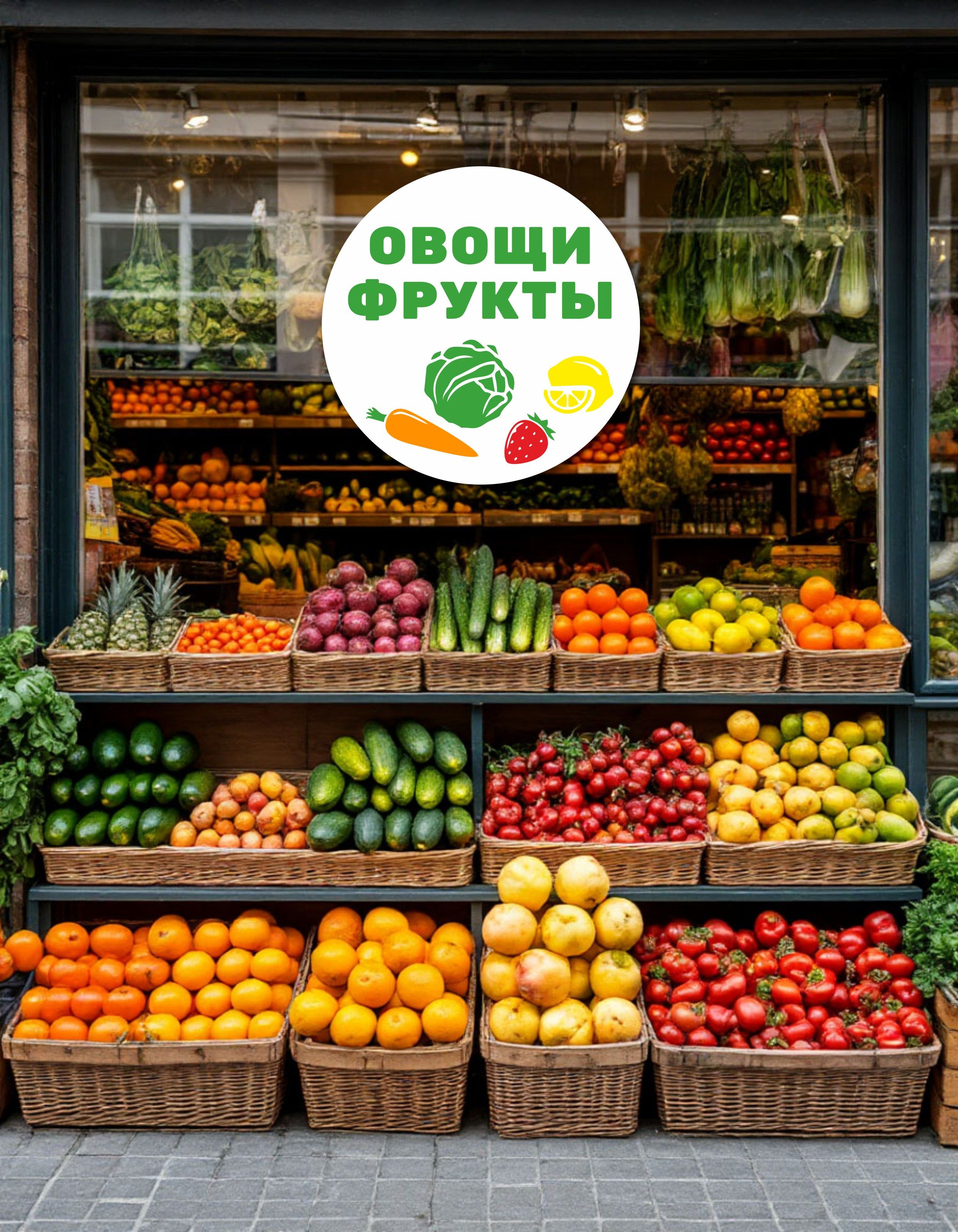 Главная / Каталог продукции / Вывески и оформление торговых точек / Вывеска несветовая круглая из ПВХ пластика "Овощи и фрукты" для магазина свежих продуктов