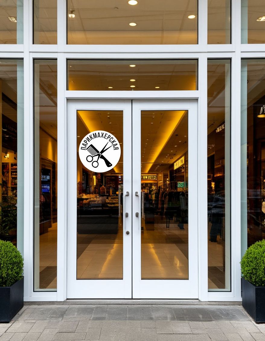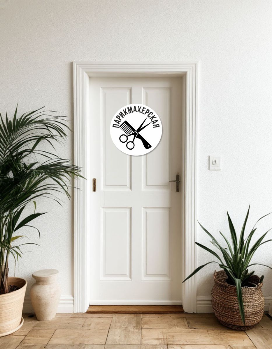 Вывеска несветовая круглая из ПВХ пластика "Парикмахерская" для салона стрижек