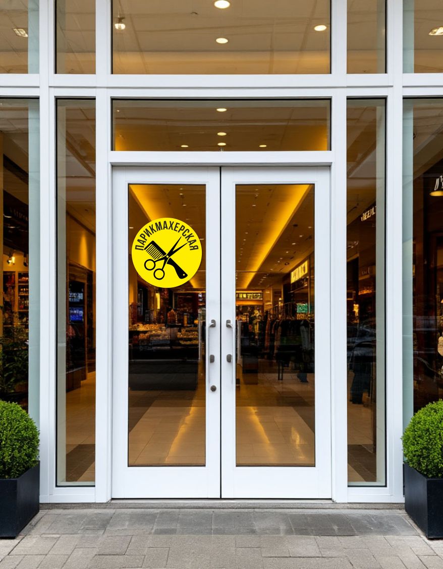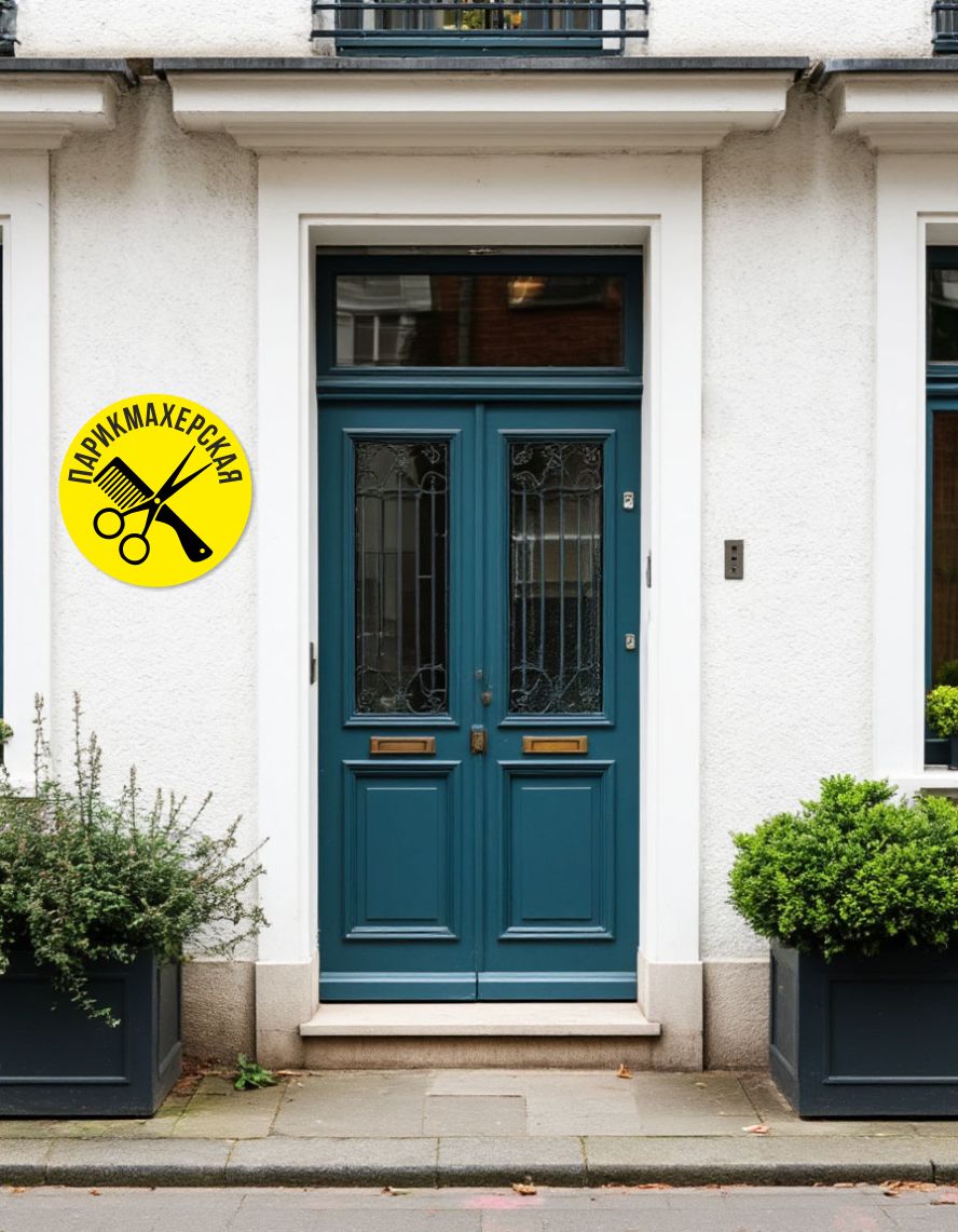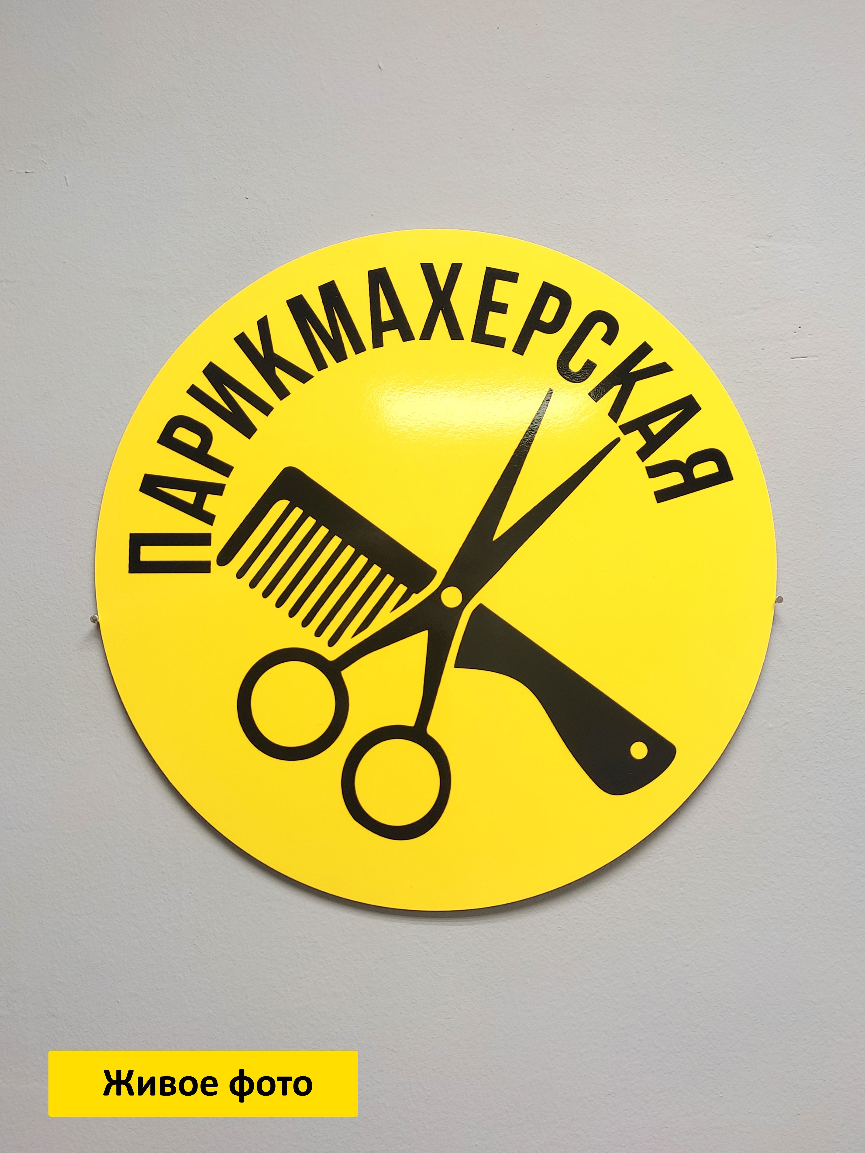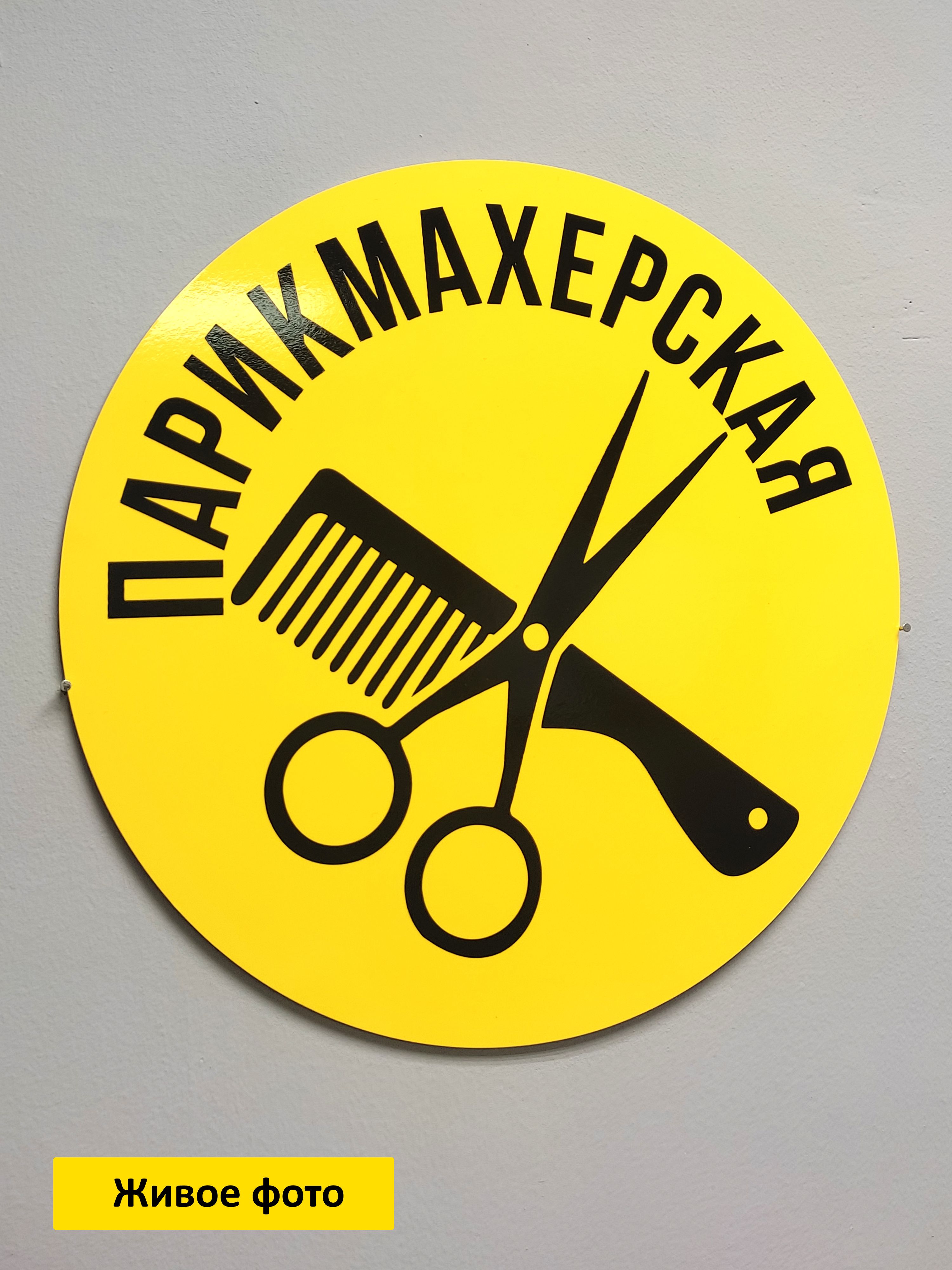 Вывеска несветовая круглая из ПВХ пластика "Парикмахерская" для салона стрижек