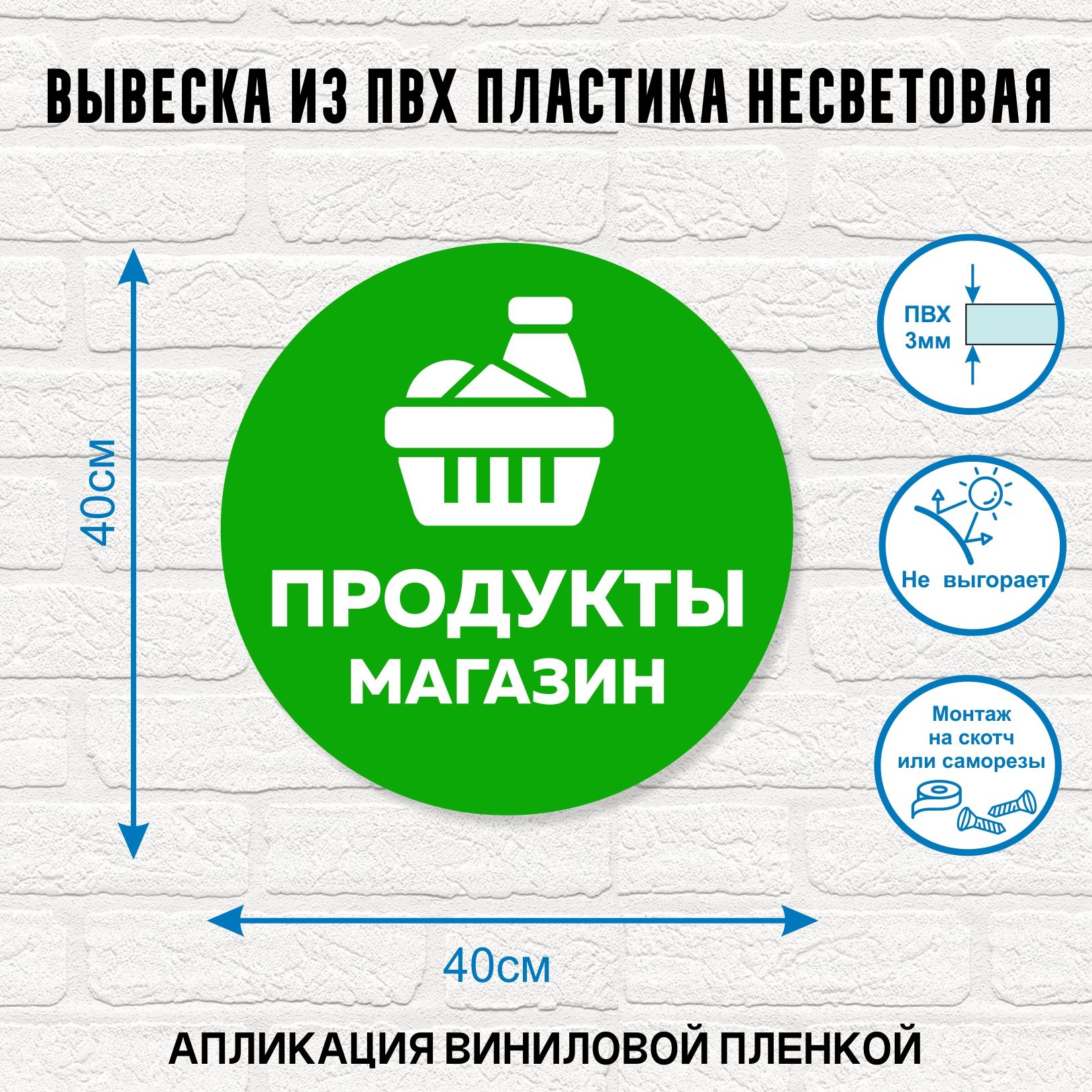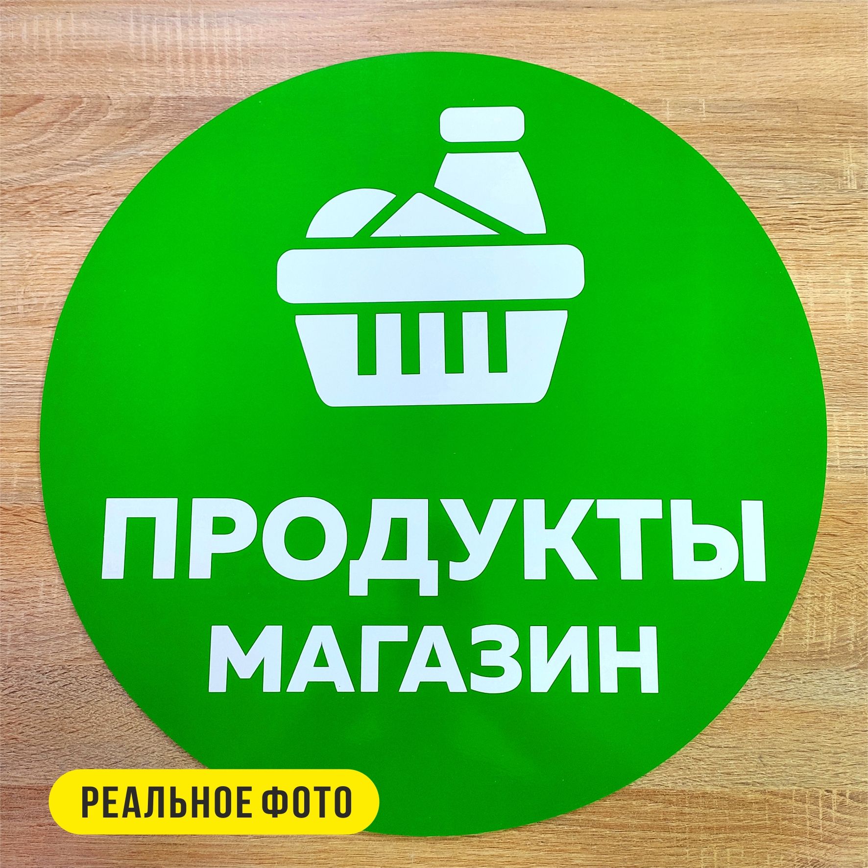 Вывеска несветовая круглая из ПВХ пластика "Продукты, магазин"