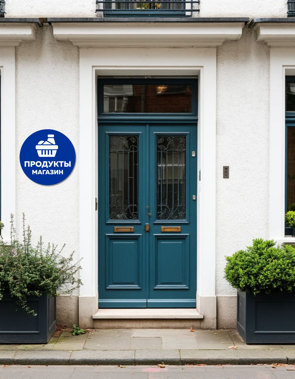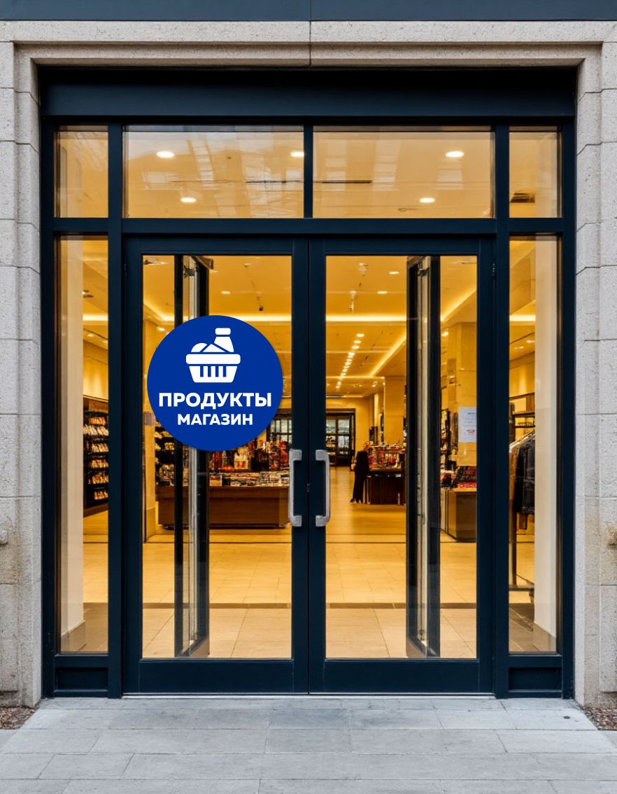 Вывеска несветовая круглая из ПВХ пластика "Продукты, магазин"