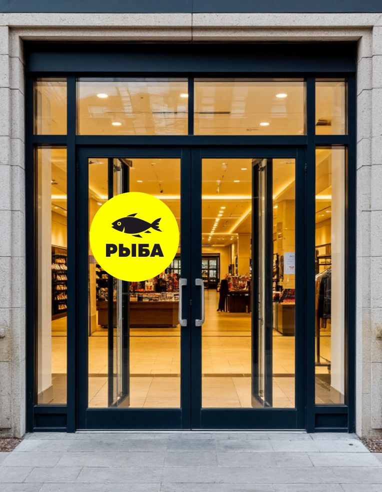 Вывеска несветовая круглая из ПВХ пластика "Рыба" для рыбного магазина