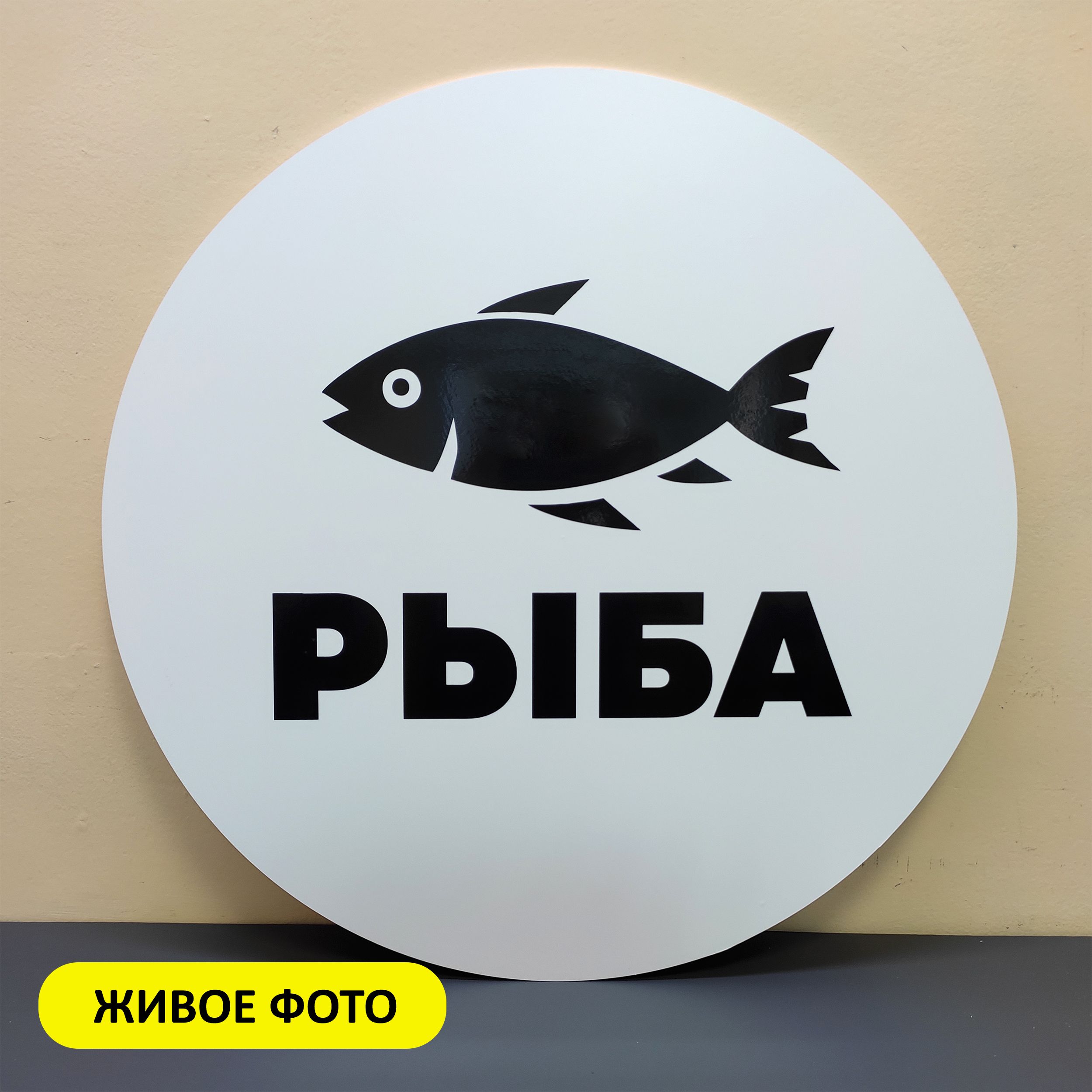 Вывеска несветовая круглая из ПВХ пластика "Рыба" для рыбного магазина