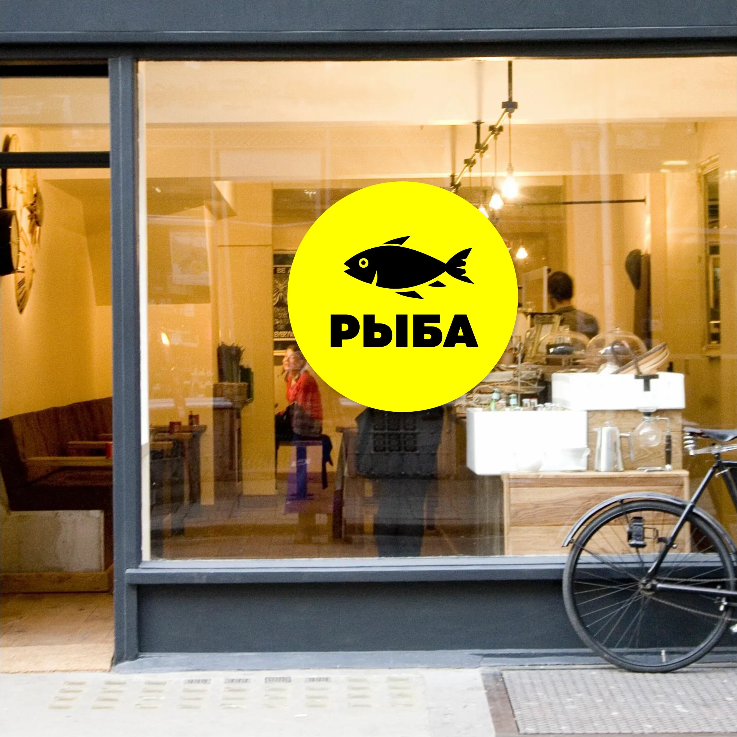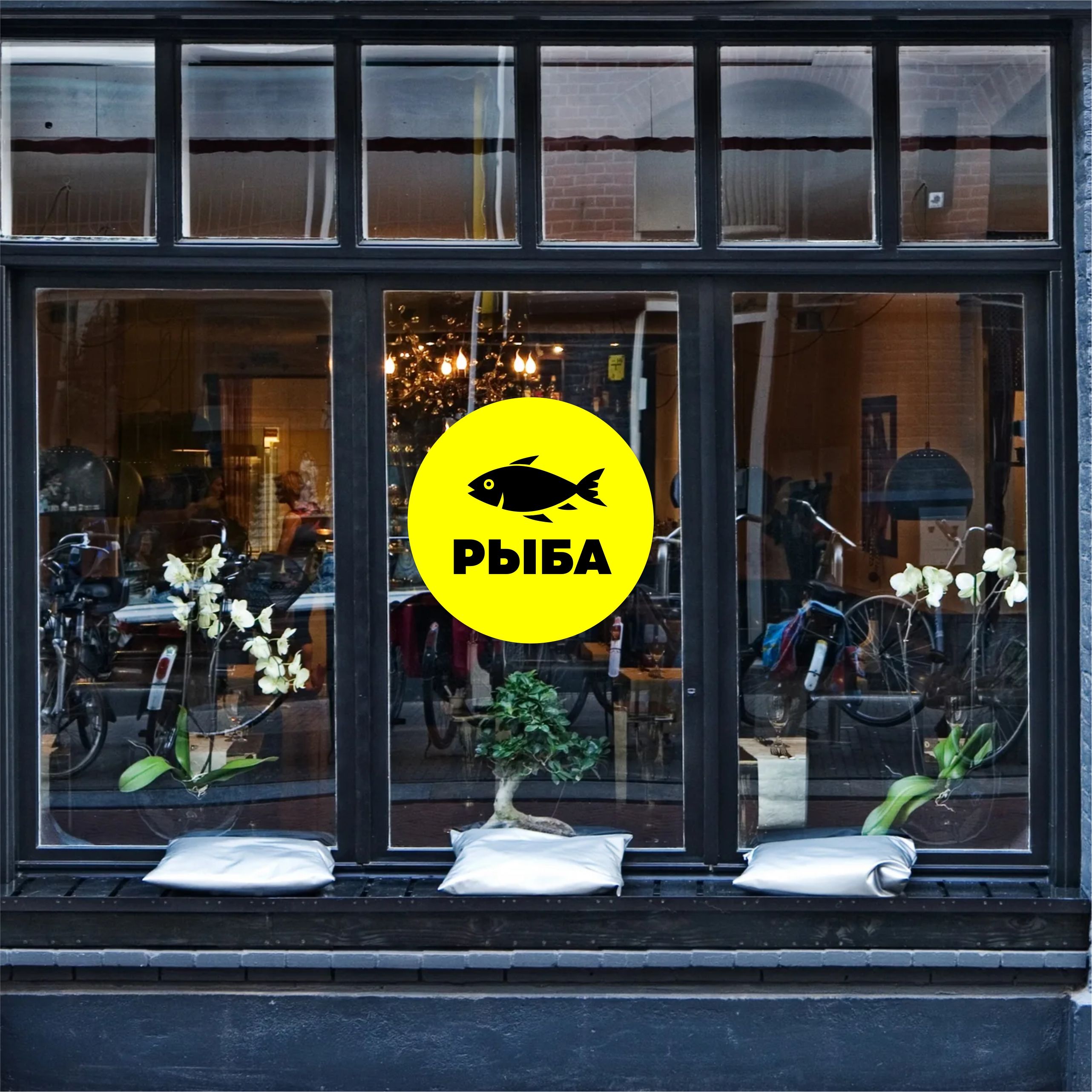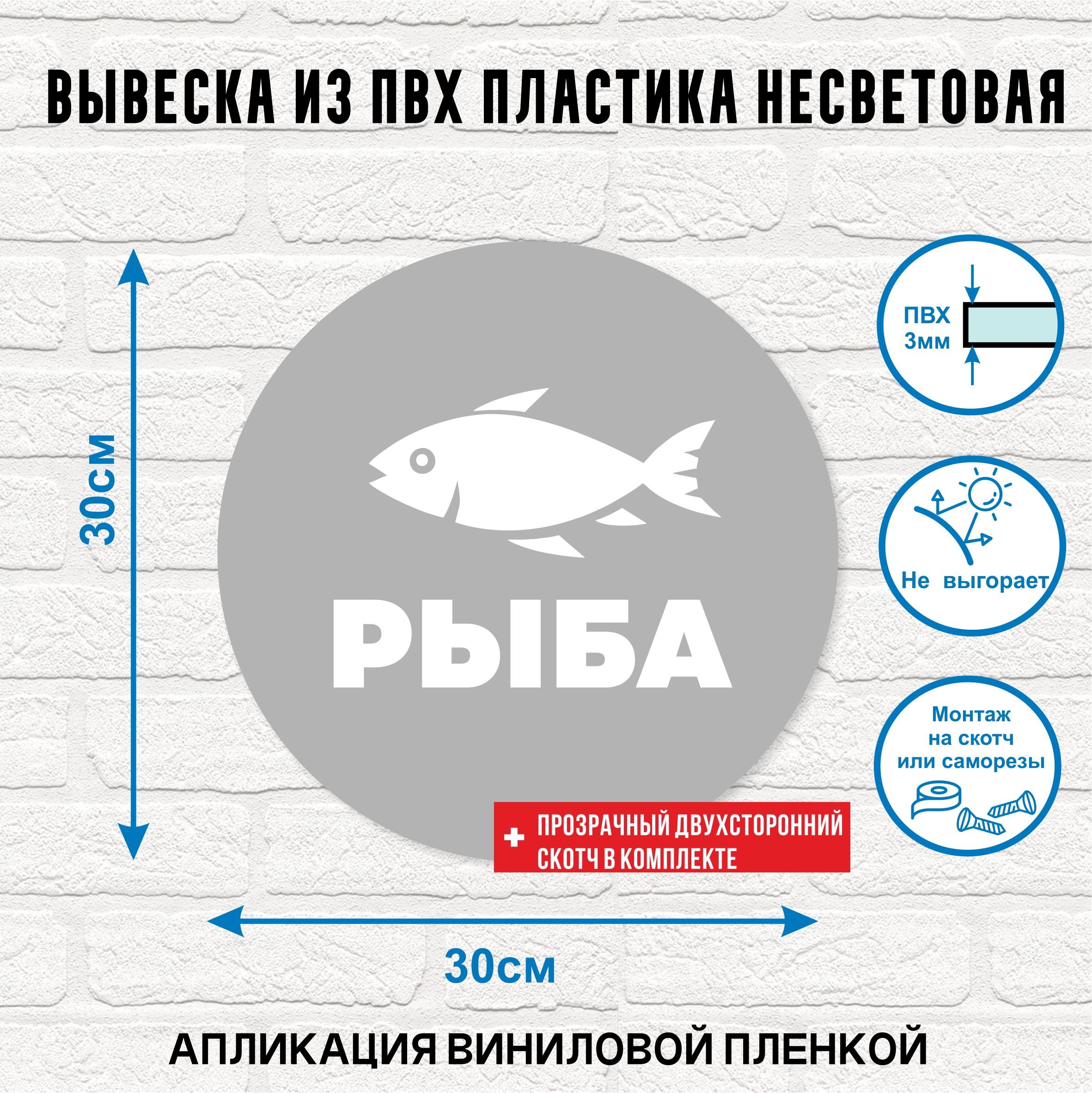 Вывеска несветовая круглая из ПВХ пластика "Рыба" для рыбного магазина